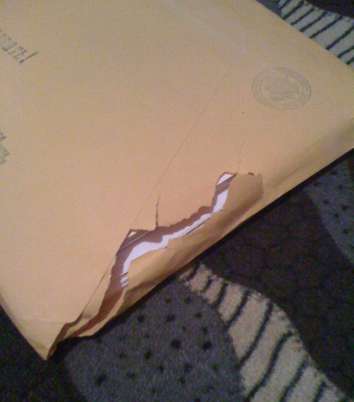 Сегодня доставили почту Pony Express. Внутри паспорт, листочек, а желтый конверт оказался порваным сбоку на половину примерно. Вроде ничего нельзя из него вытащить, он тугой. Я в шоке честно. У кого было такое, что делать..