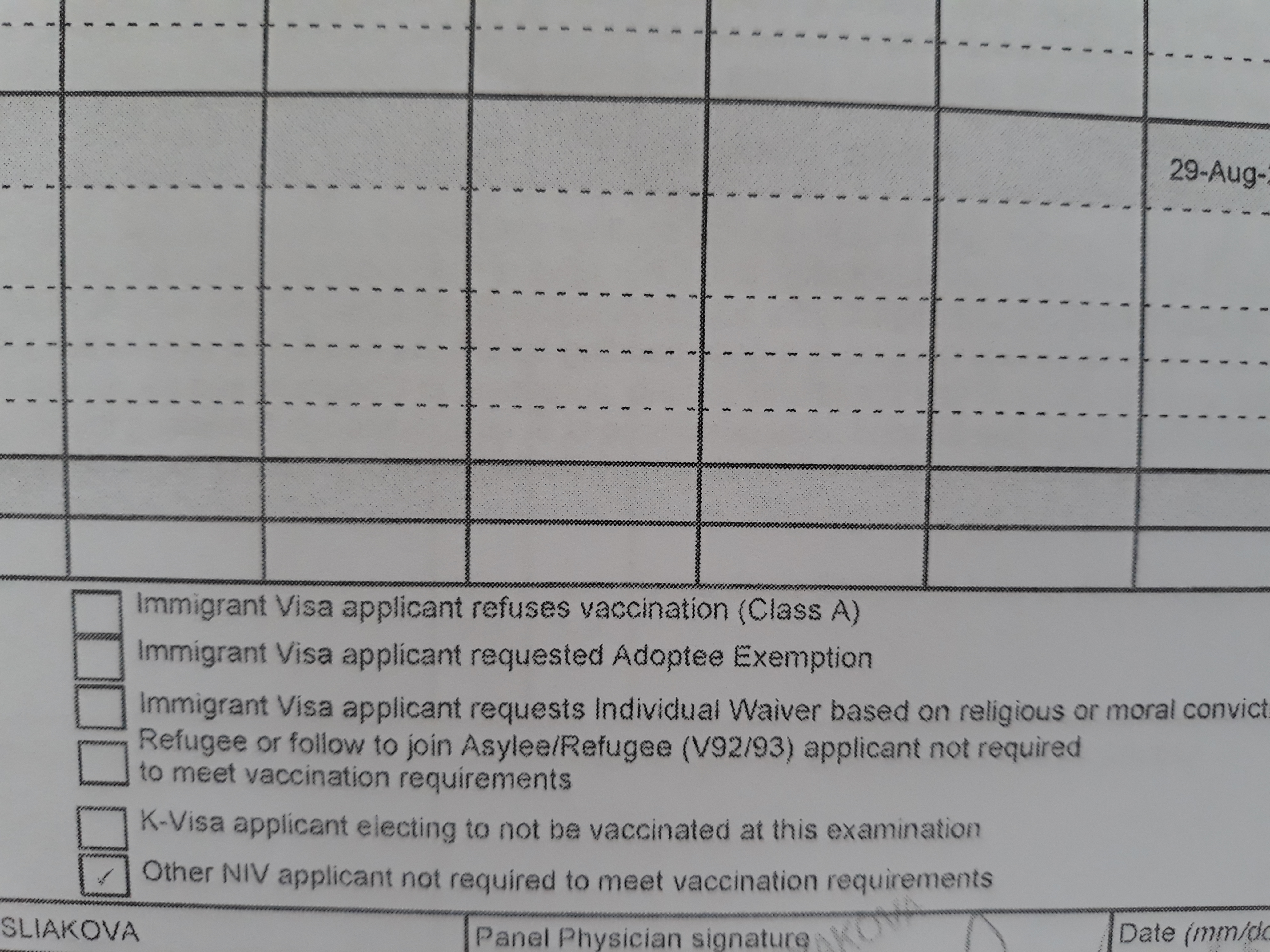 vvzz1990 писал(а): ElenDumanyan писал(а): То есть если есть непросроченный медосмотр из МоМ, все стоит комплит, то можно просто сделать эту копию и отправить с пакетом на гринку? Не надо самой ничего переносить в i 693? Даже титульную форму самой заполнять не надо? Не надо ходить ко врачу? Лично я так и поступила: сделала копию прививок (комплит) которую мне дали в МОМе и только ее отправляла на гринку. У меня с этим проблем не было, все одобрили и даже без интервью Спасибо за ответ! Можно ещё вопрос. Проходила Мом в сентябре, от гриппа прививку не делала (она требуется с октября по март), поставили комплит. Но пакет документов на гринку отправлять буду в ноябре, то есть сезон уже. А интервью вообще непонятно когда будет, может и не на сезон попадёт) Что делать? Я могу свою выписку из мом отправить? Не очень хочу делать прививку от гриппа лишний раз, дело не в деньгах, просто не хочу делать вакцинацию ( по личным соображениям)