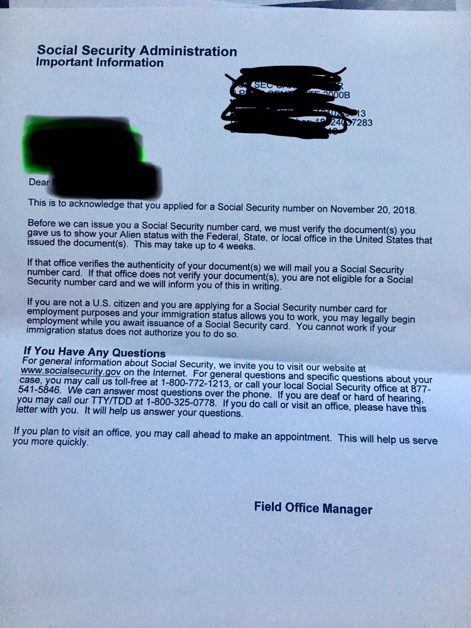 Кому при подачи на SSN выдали такую бумажку? Это вообще нормально или нет? Стоит ли ждать карту через 1-2 недели?