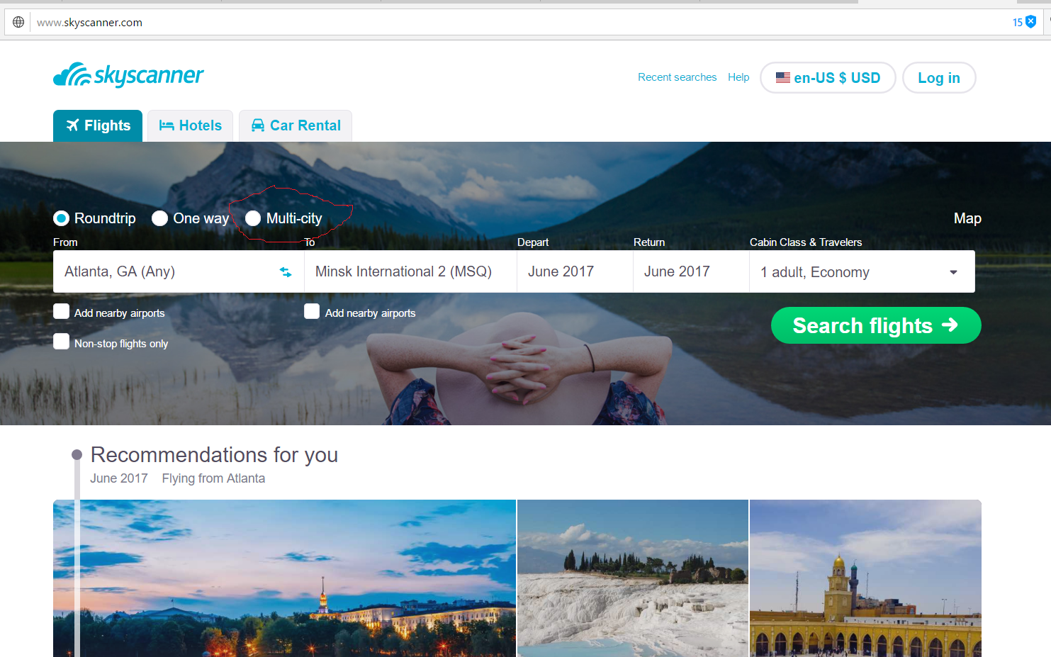Alen-ka писал(а): Nadin0705 писал(а): Откройте skyscanner. В верхней левой части экрана увидите : Roundtrip, One way, Multi city. Выбираете Multi city и у вас сразу появится опция ,где вы можете вписать города по маршруту Туда, и другое поле - для 2-х городов Обратно. Все эти города могут быть абсолютно разные . У меня нет multi city :dum Ну да ладно. Спасибо. Придется обратится к другу мужа, турагенту, чтоб помог. Может что и дешевле еще найдет. Внимательно посмотрите. Я Вам обвела красным, где эта функция.