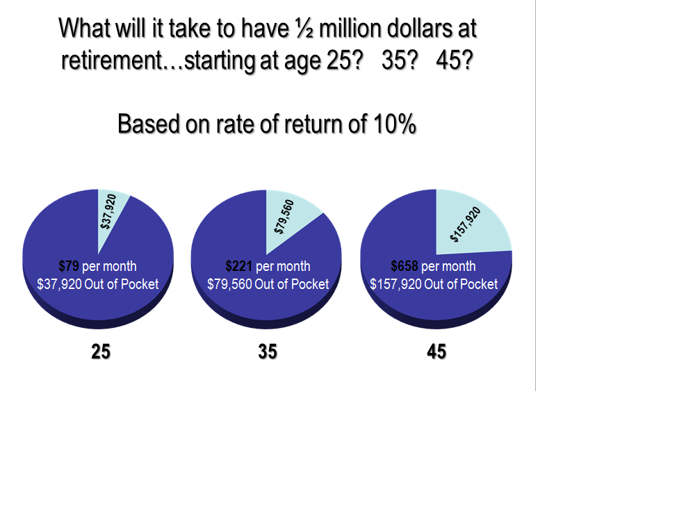 Вот на этой презентации хорошо видно, как важно начать откладывать на пенсию как можно раньше. Сравните суммы в месяц, суммы отложенные в итоге и кол-во лет выплат. Соотвественно, чем меньше лет до предполагаемой пенсии, тем больше в месяц нужно откладывать. Но это нужно делать обязательно и на постоянной основе.