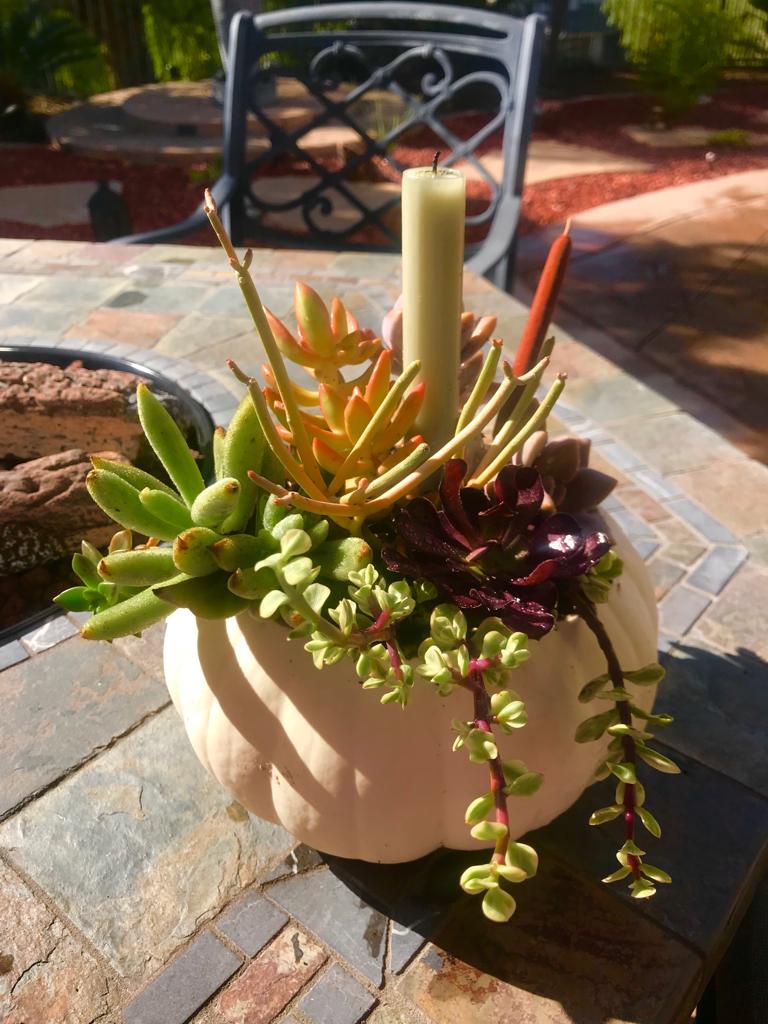 Белая тыква со свечкой очень приятная. Хотела так же сделать, но с хризантемами, руки не доходят тыкву разрезать. Ну и ладно, тыквы и к туркиному дню пойдут, успею. Ещё раз глянула на фотки, аз да, дополняют венок с тыковкой и сукками. Очень приятно все выглядит.