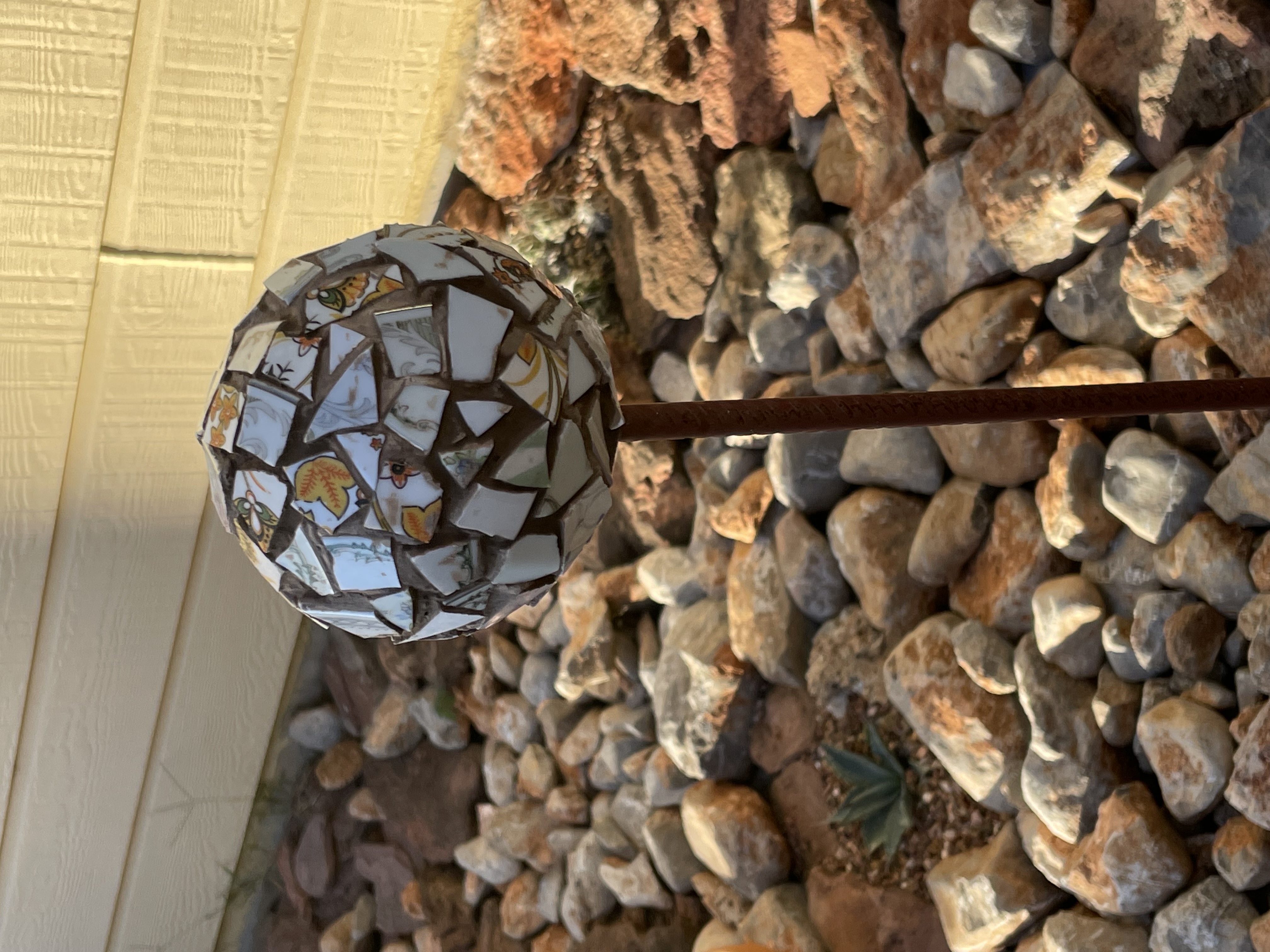 Магнолия, найдите вашего штата грибную группу на фб, там народ хорошо знает местные грибы. Из российского опыта - либо какие-то опята, либо вешенки... какие именно и съедобны ли - не знаю, надо копаться в интернете. Альтея, а весь горшок в дом нельзя занести? не все помидоры дозреют, если их зелеными сорвать. Можно накинуть пленку, если заморозок будет не сильный, выживут. Если посильнее - поверх кленки еще что-то. одеяльце-покрывальце. У меня сейчас полно некрупных зеленых. им еще расти-наливаться, очнеь бы не хотелось срывать...пальцы крестиком держу, чтоб не свалился заморозок  на мои сложно будет что-то накидывать самая последняя цементная фигулька На штыри для электрозаборчика, сами по себе они острые, того и гляди без глаза останешься, и пес еще прыгает. тоже страшно за него - понадевала сначала на них бутылки, безопасно, но не очнеь красиво. Ваще не красиво. на глаза попался мячик, тем же псом пожеванный