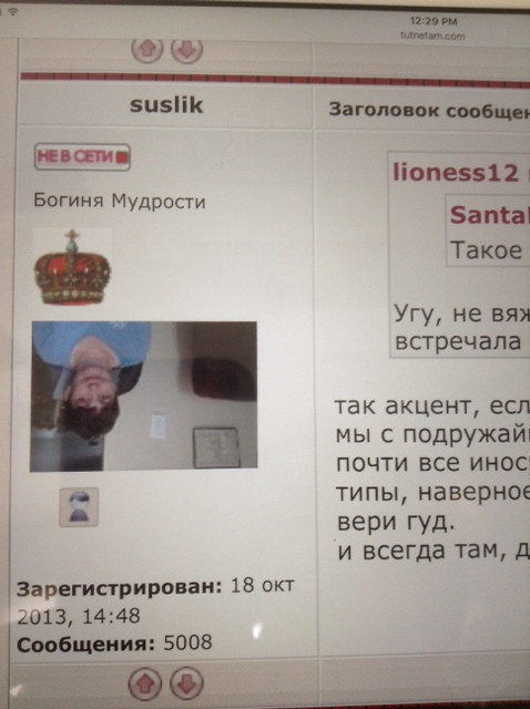 Суслик - перевёртыш какая-то На компе - нормальная, на дивайсе - вверх ногами)))))) Сори, я тут не про дейты))