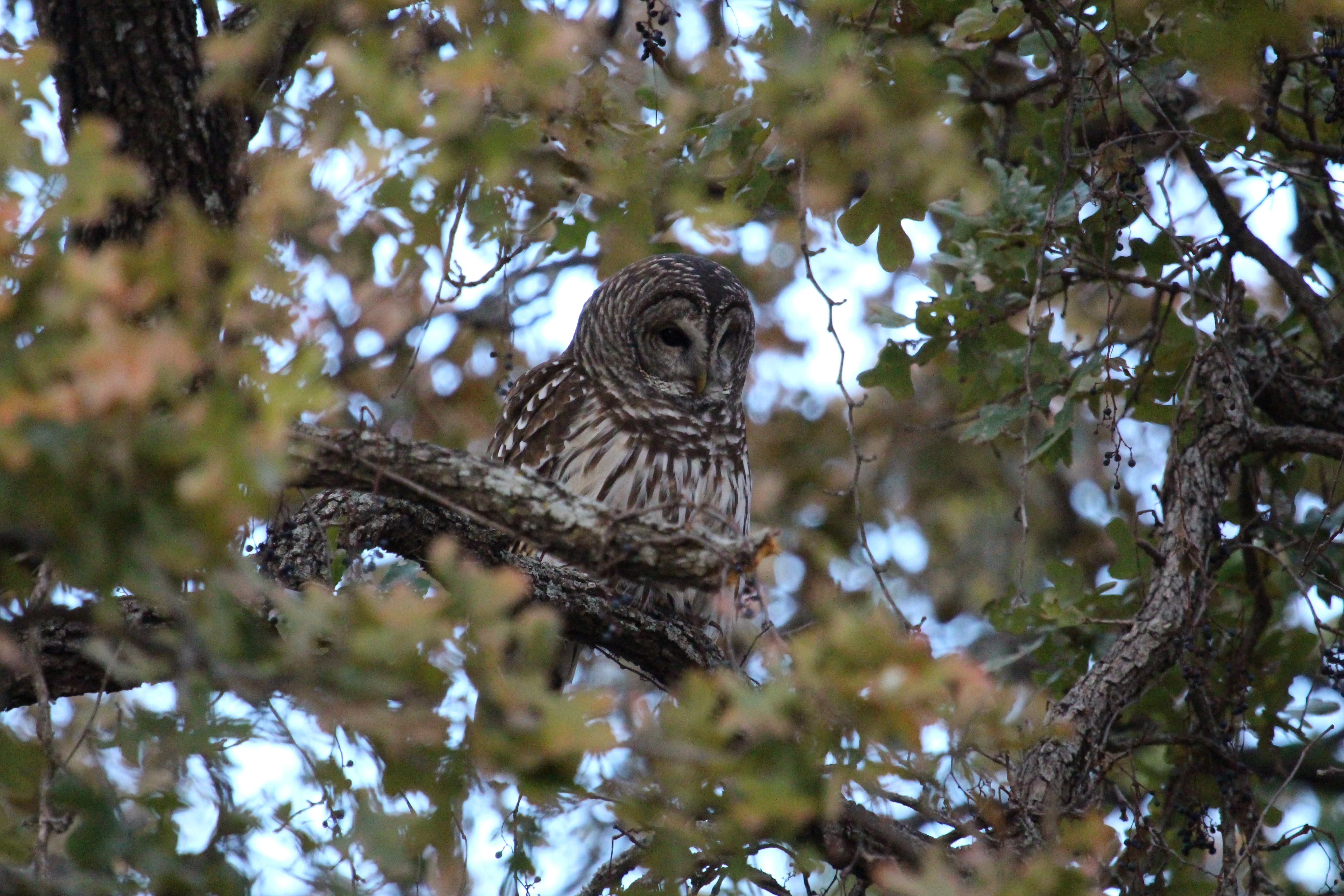 еще вот посетительница нарисовалась  Никогда бы не заметила, если бы она не полетела. Спокойно так полетела - оказалось, охотиться. Посидела, подоздала, пока я метнусь за камерой. Спустилась, поднялась, зажевала змейку. Спиной, правда, сидела, к сожалению, ну хоть ладно не среди веток.