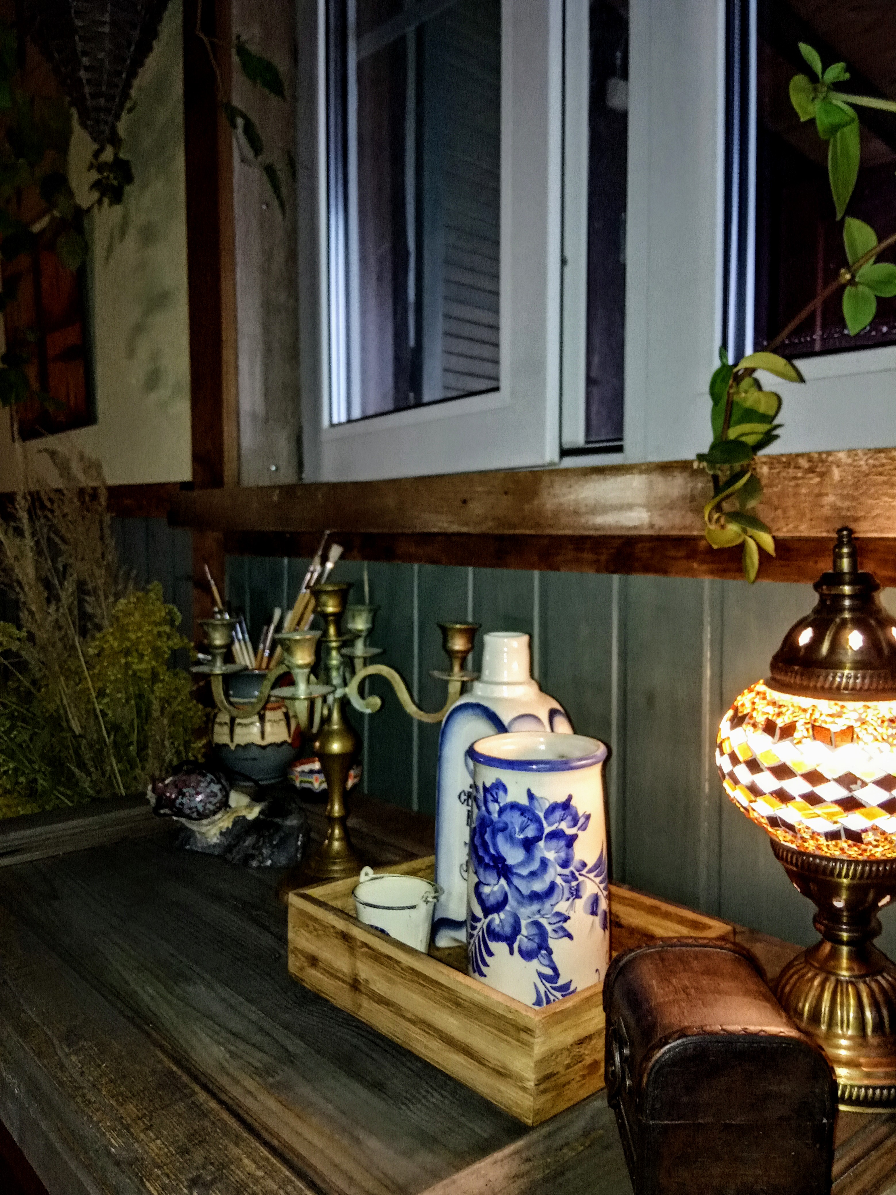 Соорудила себе уголок, "уголок писателя" типо..) Окна белые не нравятся, не подходят они мне вообще. Делаю на них раскладку, жалюзи деревянные и штору, все лучше будет. И можно будет сидеть зимними вечерами с коньяком и ждать прихода музы:)