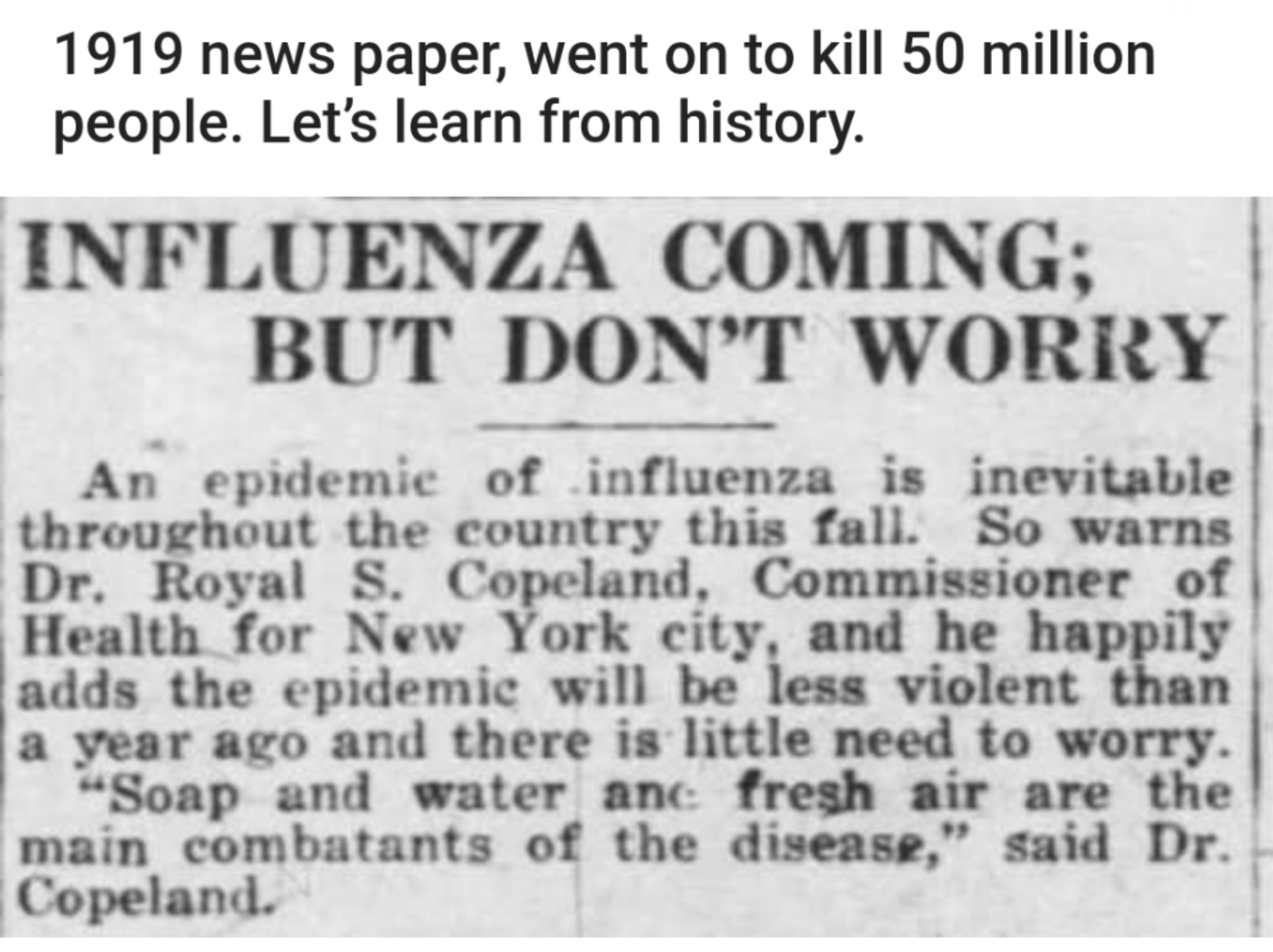 Silver Bullet писал(а): Maribella писал(а): Ученые также говорят, что даже просто свежий воздух и солнце убивают вирус и уменьшают его распространение это же говорили во время эпидемии испанки... многим не помогло такое средство...