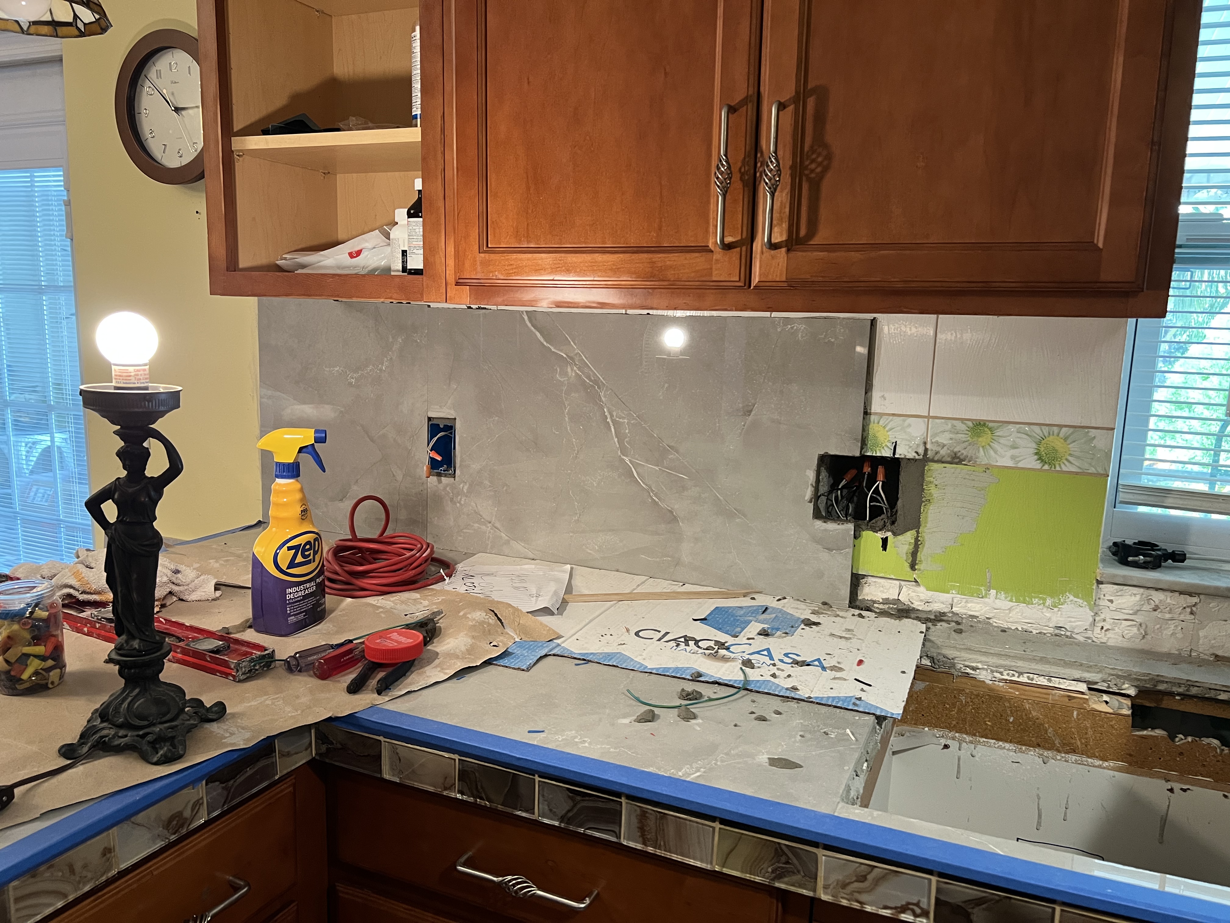 Мия, ну вы даете! Саже каунтертоп тяжеленный сами???Это кварц? Красивый слаб.И фартук тоже? А кабинеты красить будете?Какие молодцы!