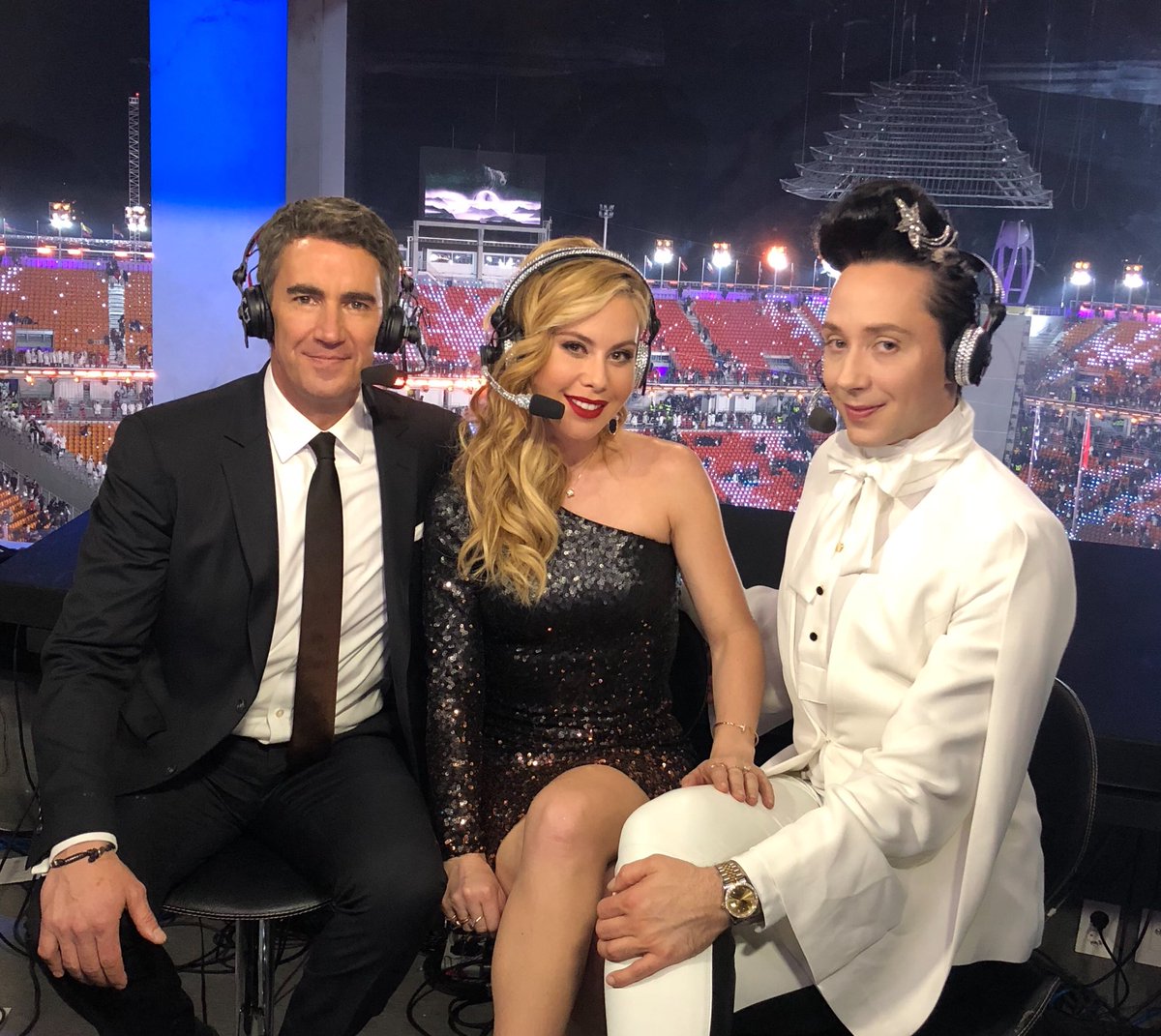 Valencia писал(а): One last Pyongyang Chang party - Johnny Weir and Tara Lipinski Не могла без смеха на Джони смотреть. Эти губки, причесочка. Жаль костюма видно не было, когда комментировал.