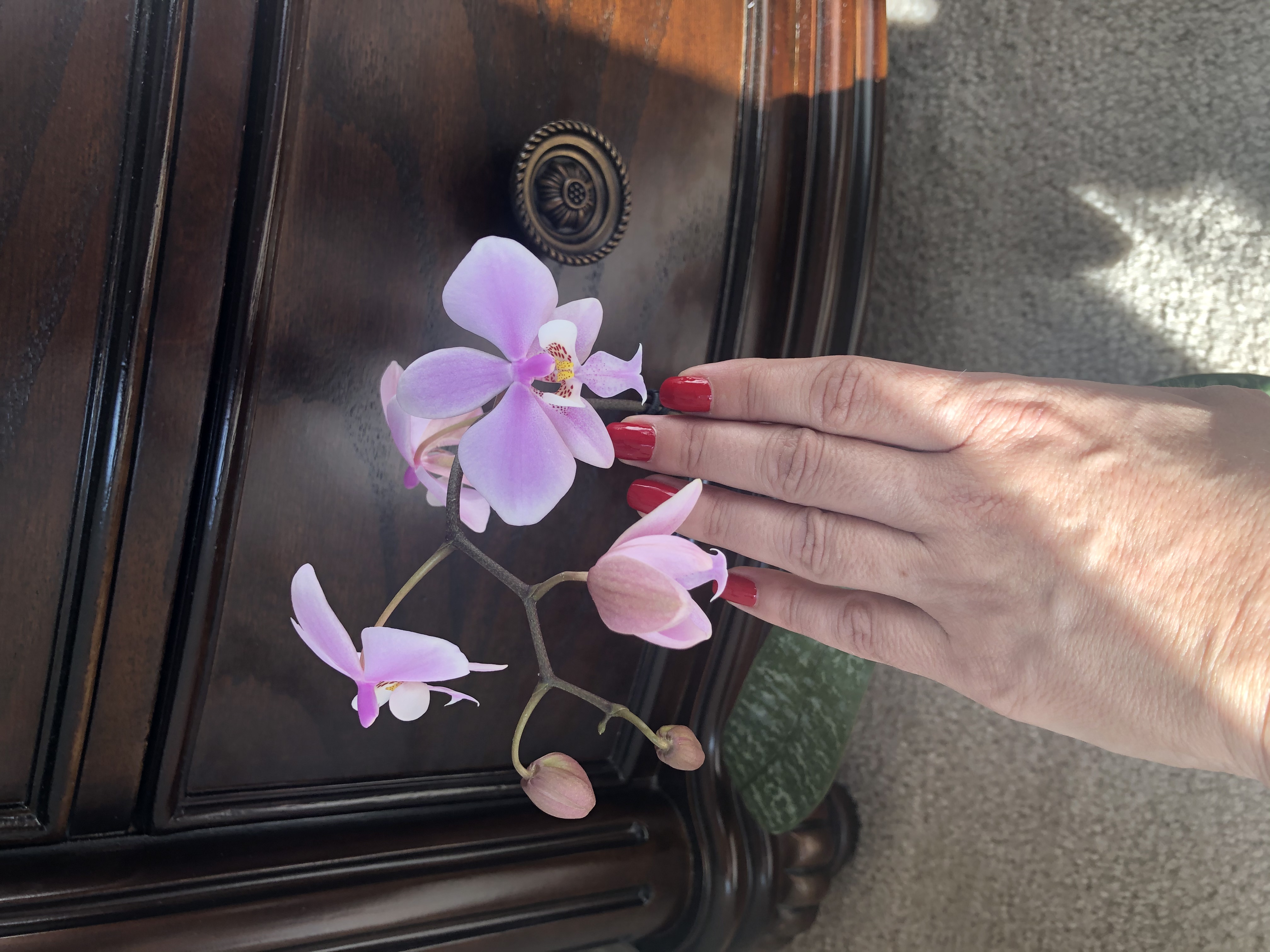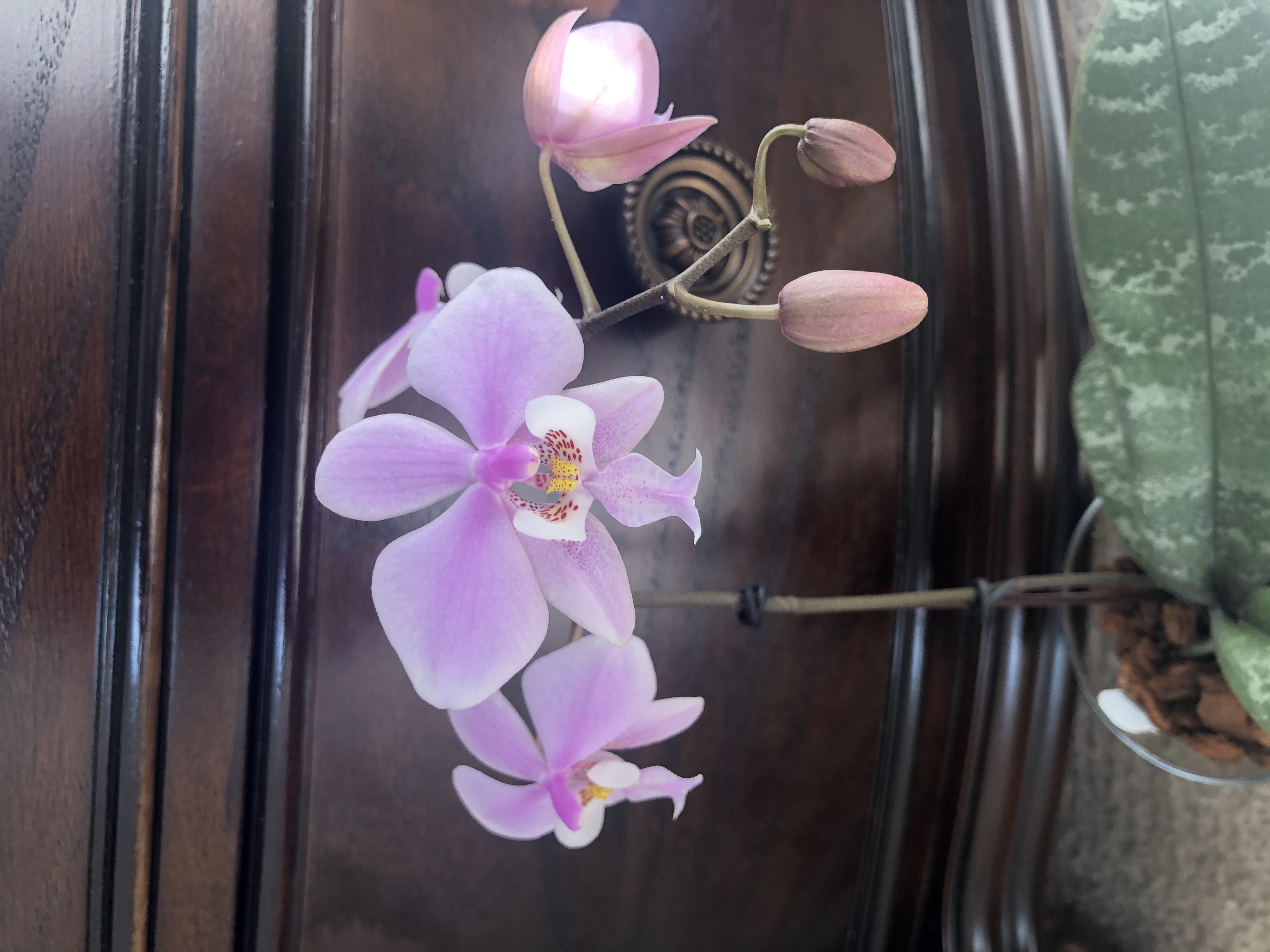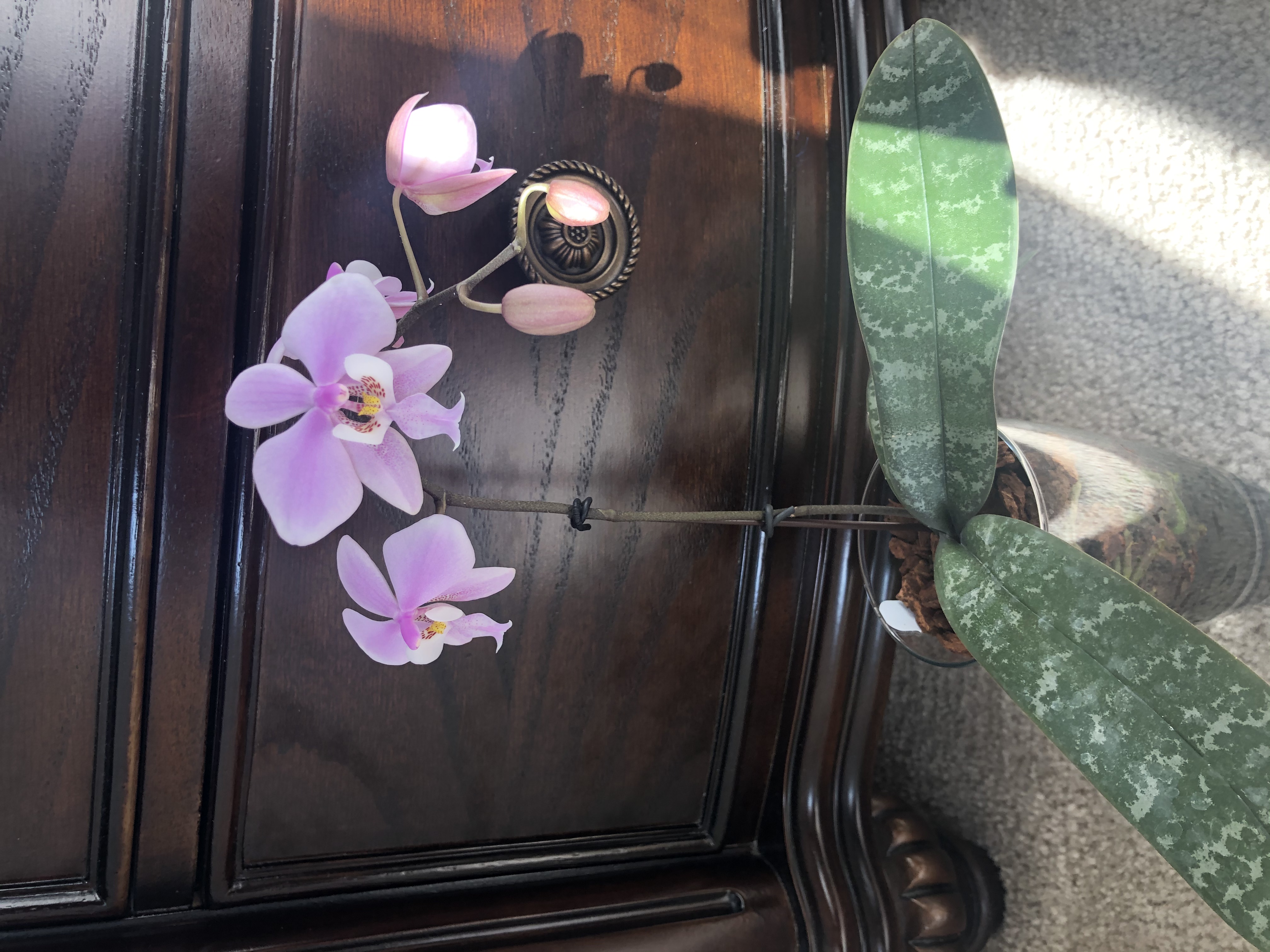 Три, Карл, три!!! орхи вчера купила.  (таблетку от жадности забыла принять перед шопингом) Желтую губошлепку в ТД (Бейли  , первая желтенькая у меня появилась), именную в Лоусе, цветы еще в бутонах, дешево, соблазнилась на цену и наличие имени (Wang Lin Rose). И под конец в ХД увидела 5” темно-бордовую с очень темной (почти черной) губой, в плохом состоянии, помятые листья, поникшие цветы, но не уцененную  Сердце мое переполнилось жалостью и не смогла ее бросить погибать. Ну вот что делать с болезнью, чем лечитья?