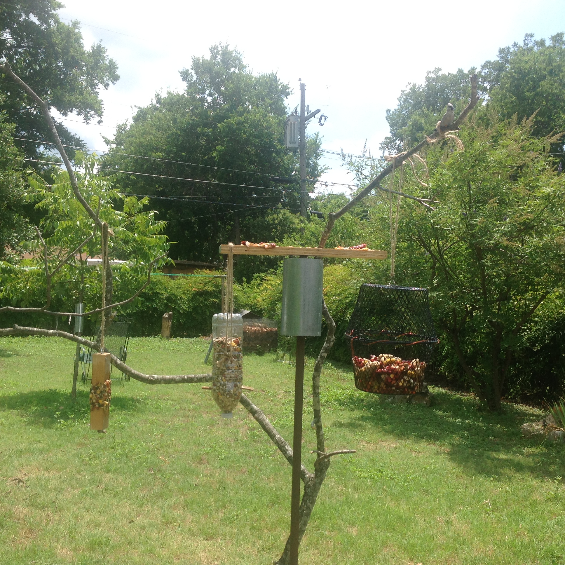 Я тут вся обзавидовалась соседям через несколько домов на нашей улице, что к ним прилетают на кормежку местные попугаи. Прочитала в интернете что они едят и соорудила нечто подобное. Теперь жду. Но пока даже обычные птицы игнорируют мое творчество. Вот такие у нас.