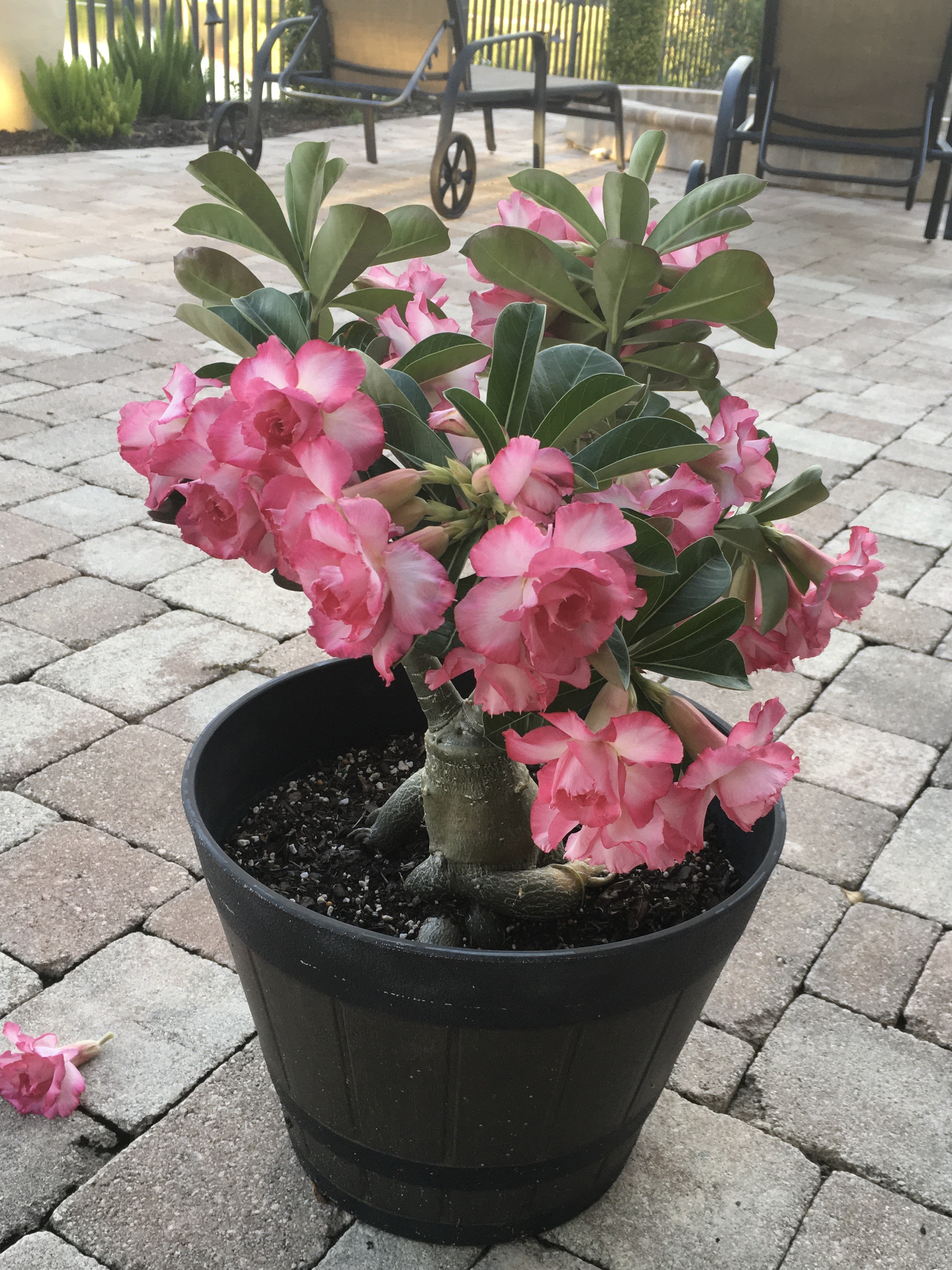 Адениум, вот минус у махровых, что цветы тяжелые и вниз смотрят.