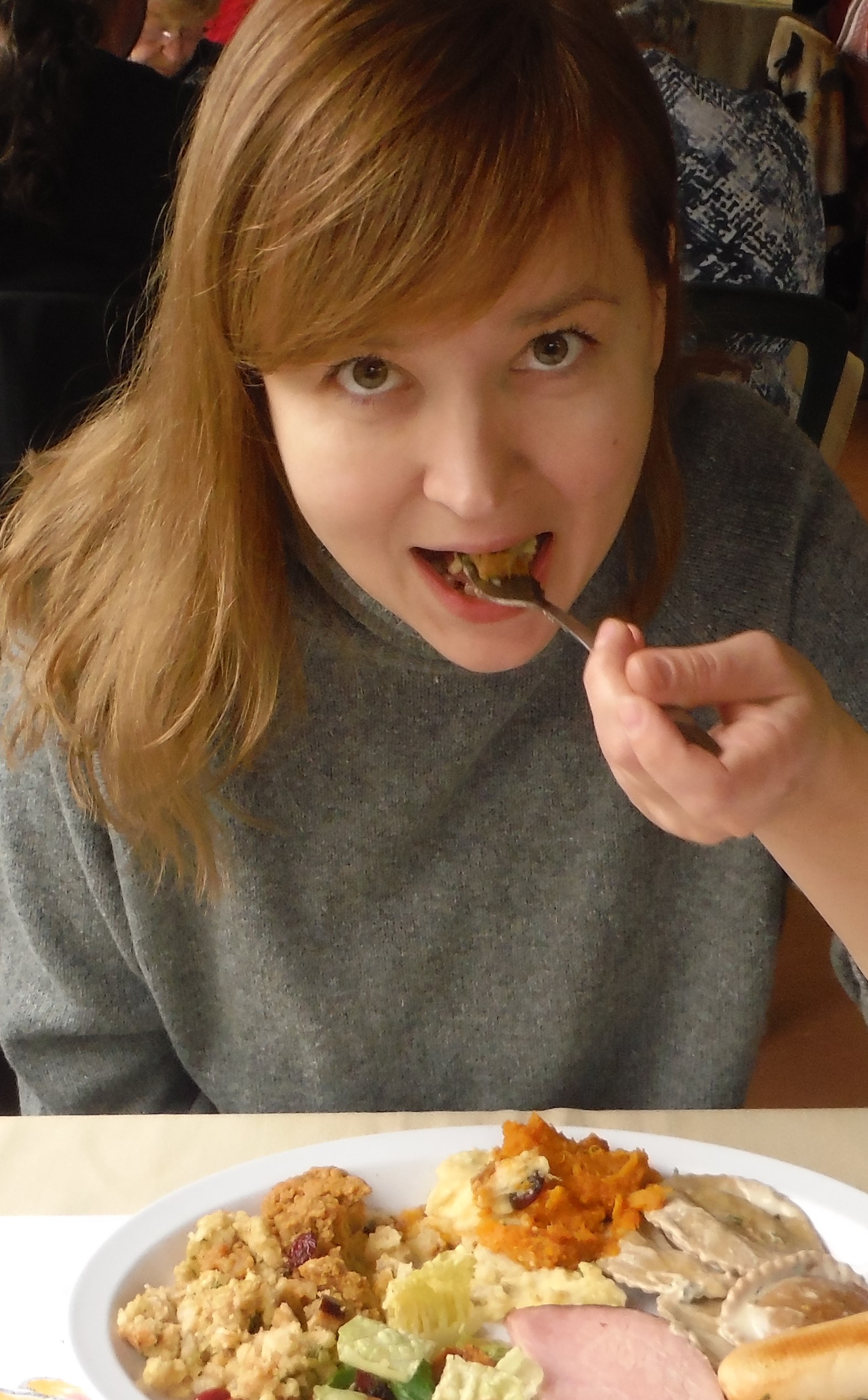 Ну надо же, и чего там вкусного не пойму фром скратч не фром скратч все одно крестьянская еда. Я в первый раз это все в ресторане попробовала, чуть не блеванула от их тыквенного пирога. Думаю этож надо додуматся пирог из тыквы. Это ж от нищеты только можно. И это все в центре Москвы :c_laugh Ну и картошка с самой туркой. Все убранство напомнило бесплатную едальню в честь праздников