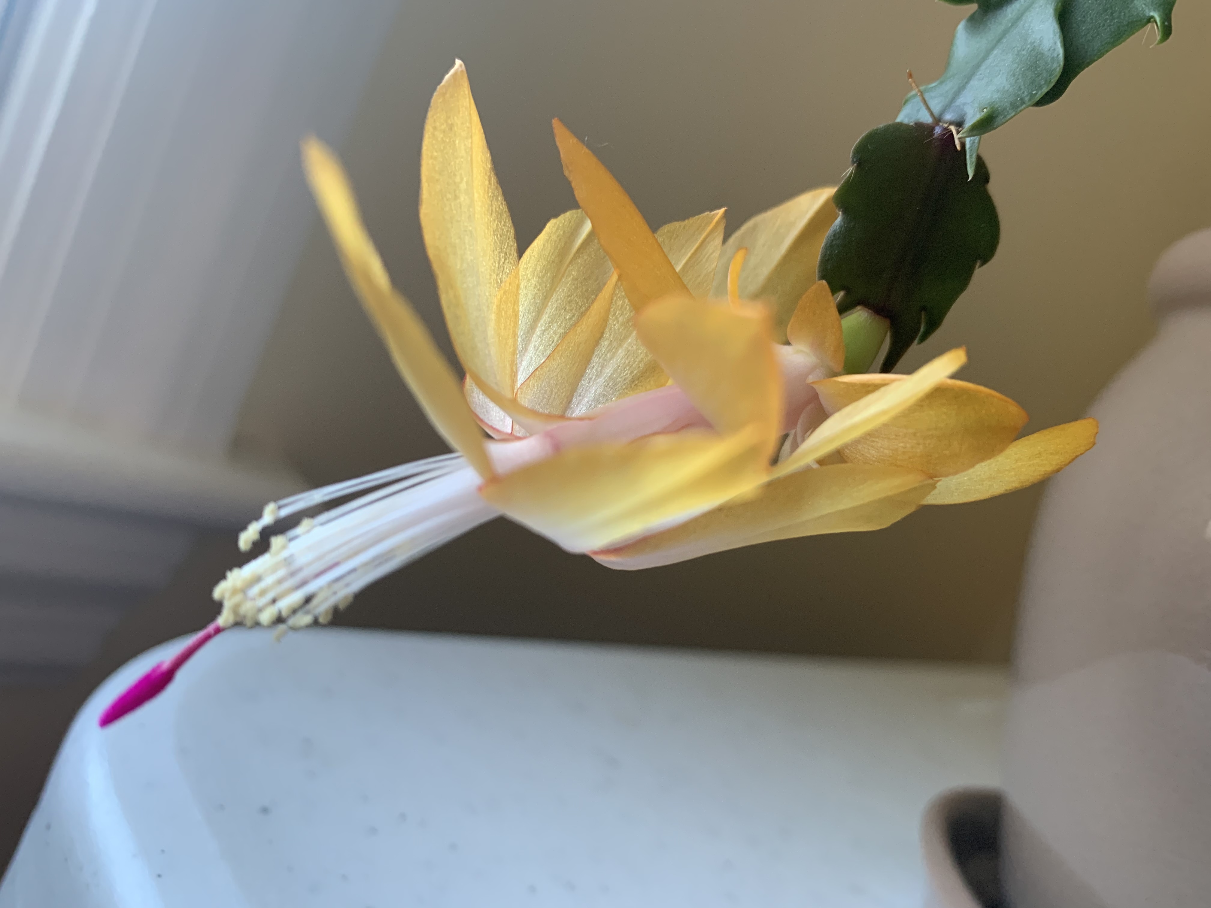 Приехал мой жёлтый зигокак ... вроде не "моль"  Было 2 увядших цветка и один (на фото) заморышный... Есть несколько бутонов... может еще распустит?
