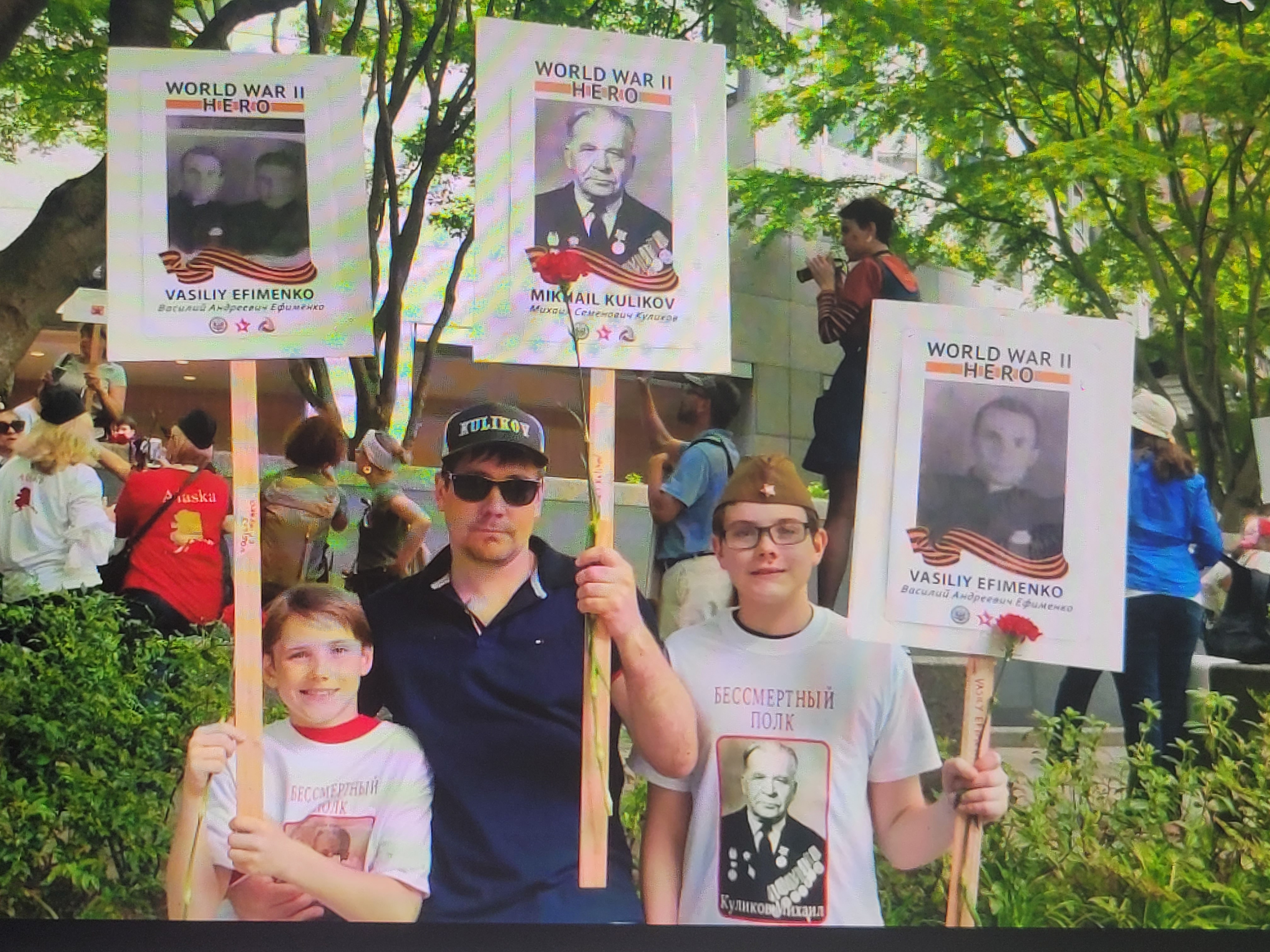 В Анкоридже прошёл Бессмертный полк. Люди вышли в пилоточках, с георгиевскими ленточками.