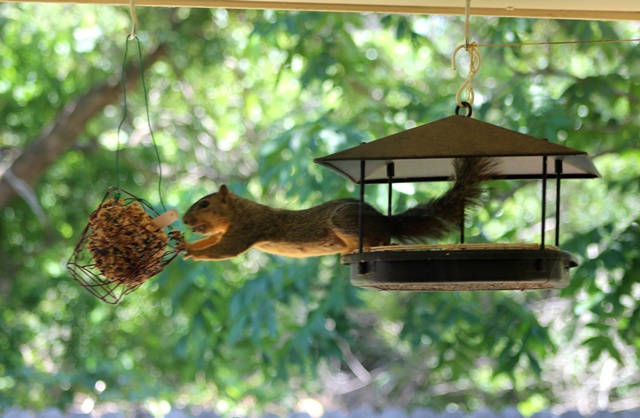 Гибискус так и цветет по 1 дню каждый цветок, это нормально (хотя и обидно  ) У меня скоро тоже начнет,бутонов полно уже больших. У Латте не лилейники, это лилии. лилейники на длинных голых цветоносах цветы выносят, а снизу пук ланцетных листьев. Марсем, я так и думаю, погодить, пусть кустик поприживется - посадила на этой неделе его только - укрепится, я на него надеюсь  Белинду дрим видела я, но мне хочется ярких. Ну и вообще не к спеху - места-то нет  Продолжаем выставку посетителей садов и огородов - ну вот как эта белка залезла на кормушку на высоте почти 2 метра безо всяких ступенек? попыталась выследить - она терпеливее и не подходит  А на двух стульях посидеть не только люди любят, очевидно