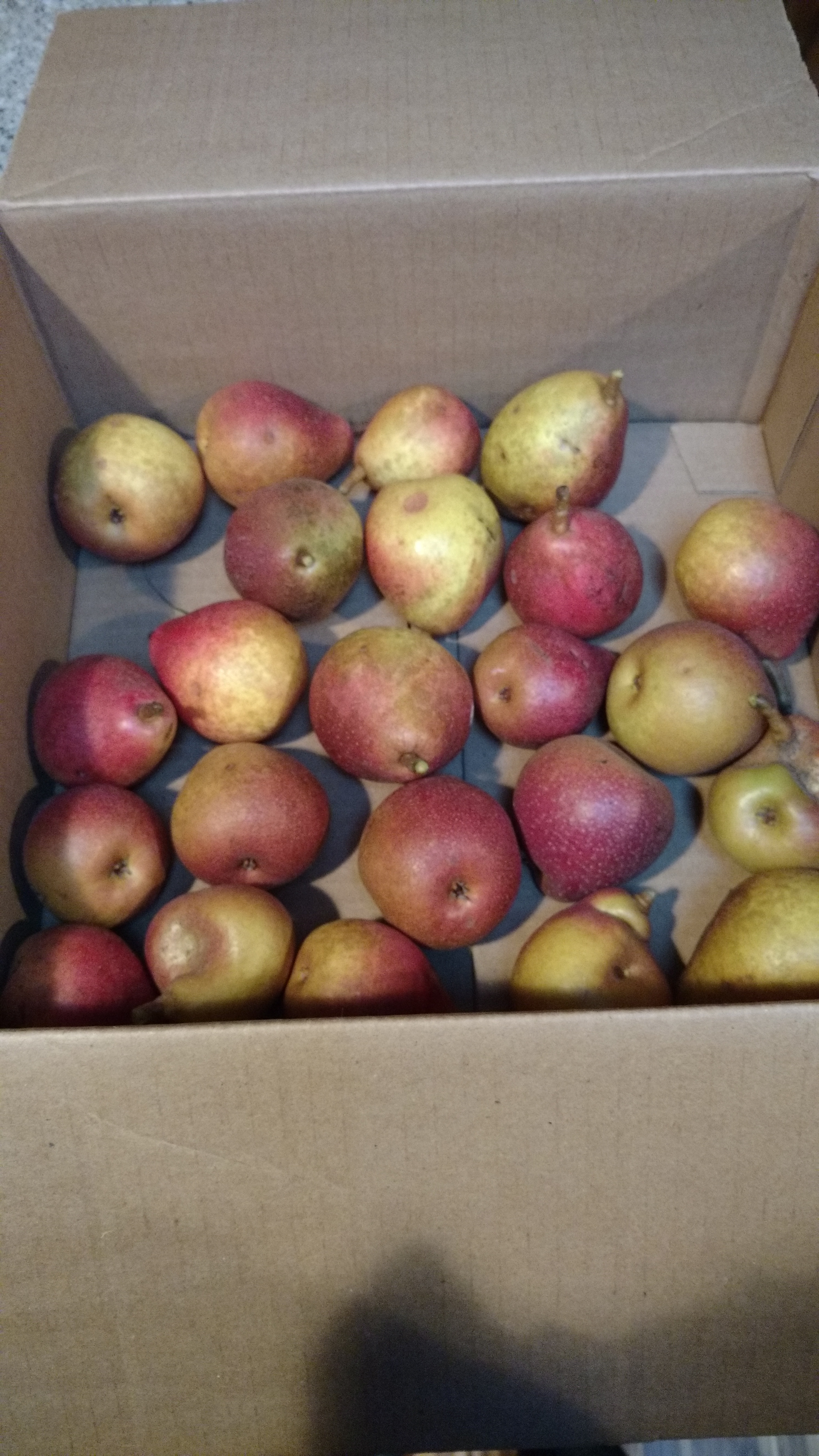 Груша - обчный Bartlett. В магазинах такой сорт часто продается. Но домашние, конечно, вкуснее. Они пока тверденькие такие, сладкие и с кислинкой одновременно. Не знаю, исчезнет ли кислинка, если полежат и помягче станут.