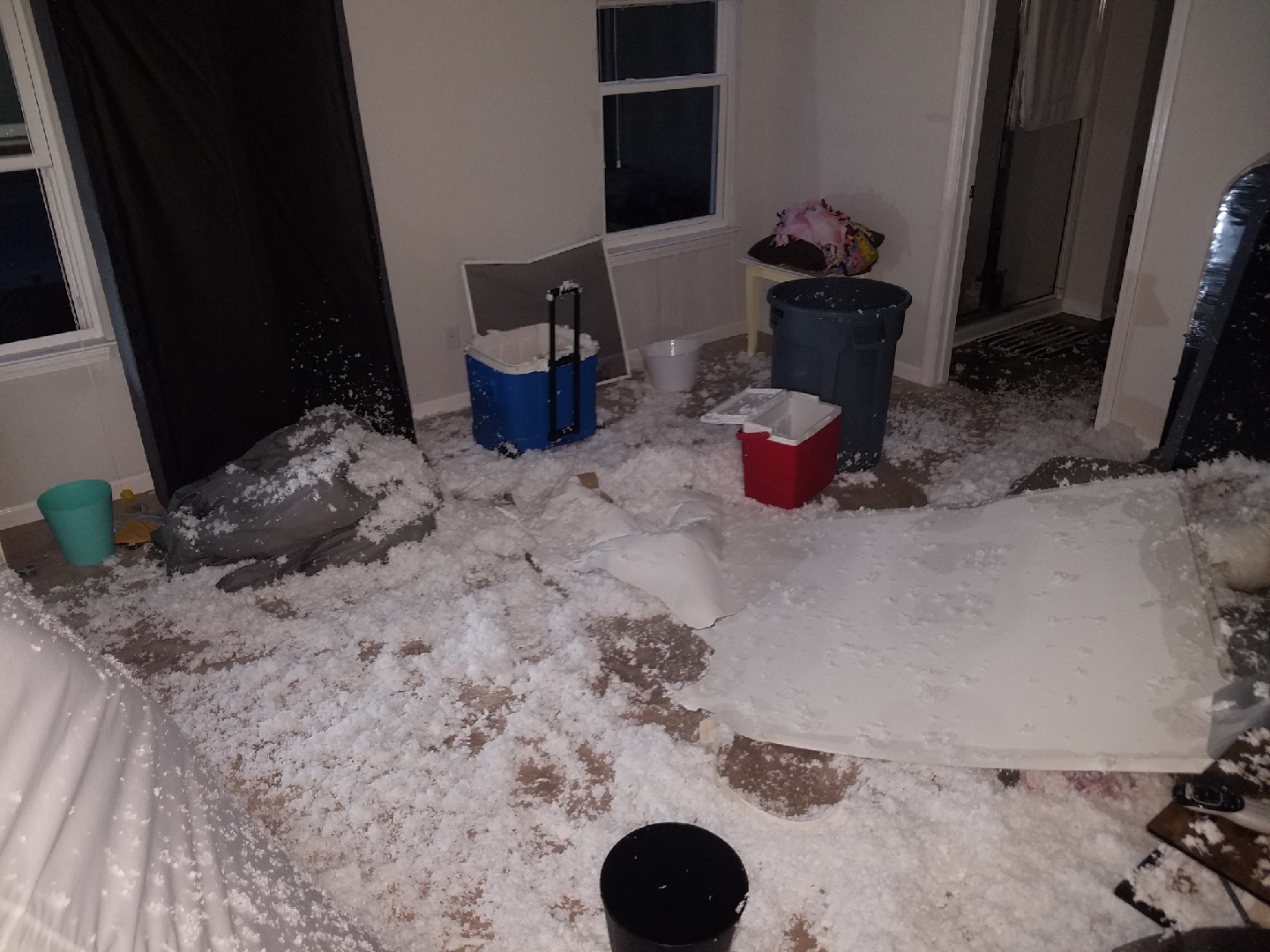 Из дома с дырой в крыше: Marv made it! Crazy man took off last night, just arrived in the hood an hour ago. Hes trying to salvage as much as he can but our house isnt looking good. Master bedroom / bathroom is destroyed & soaking downstairs as well.
