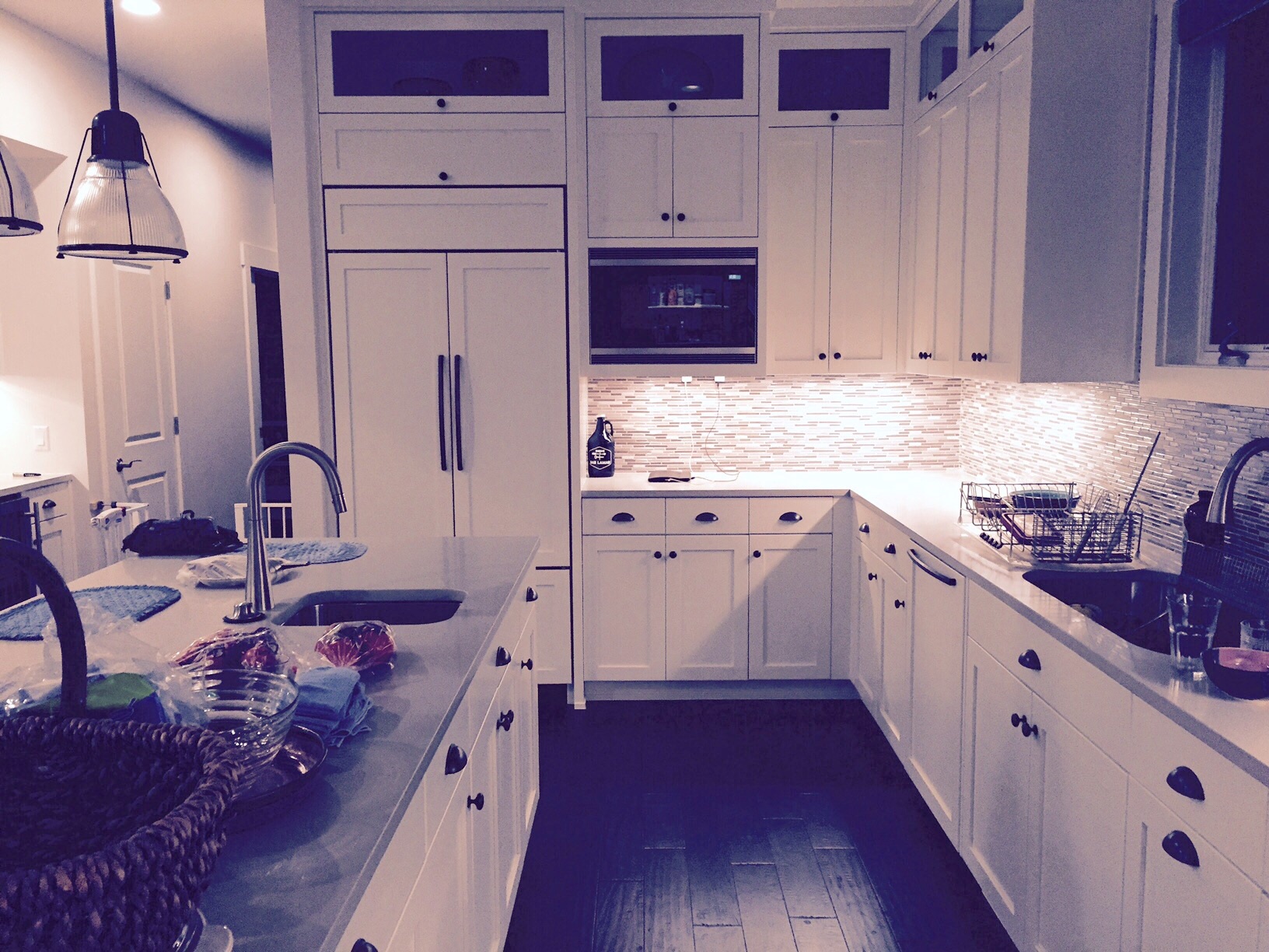 M&M's Mom писал(а): Перекрасили? Первый вариант темнее не только столько из-за одного гарнитура, но и из-за сочетания его и темных полов. Это сужает пространство, да. Нет, просто было два варианта изначально... Я для интереса сейчас покажу кухню наших друзей в ТХ , которые, как написали, построили маленький домик в центре города. Они его строили по принципу не нарушения архитектуры общего места, где много старых домов. Я не была впечатлена поэтому видом дома изНАружи, но когда вошла во внутрь, то ахнула. вот их кухня, где видна та же плитка на стене, как у Гудлиных клиентов, но пол у них из натур дерева, не ламинат...там дверца открытая в pantry room