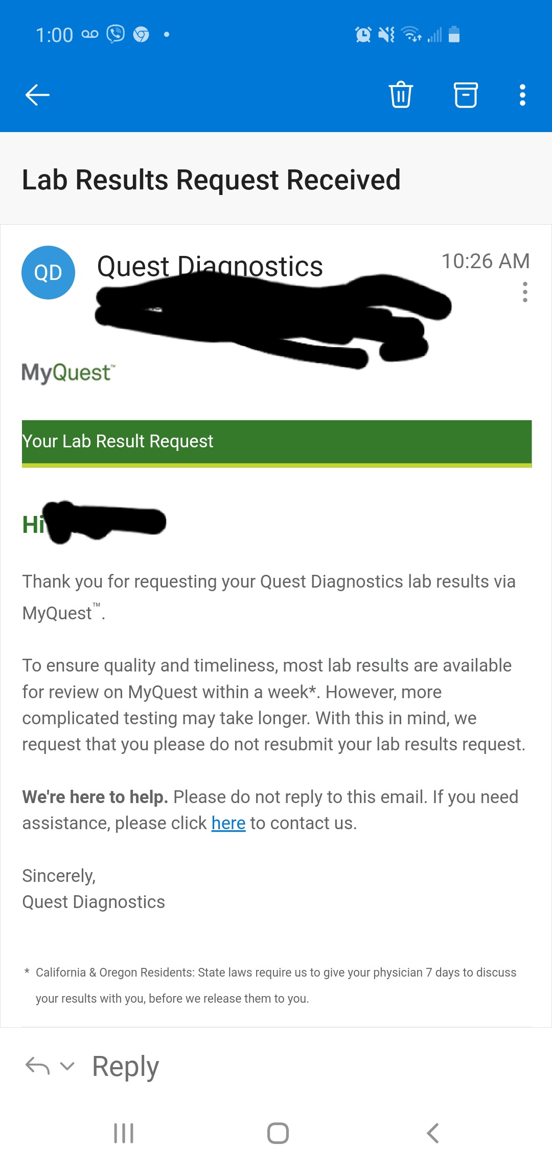 sweetalla писал(а): Мия, а где ты делала тест? Quest lab Я делала 2 раза тест результат реквест. Глухо как в танке. А вот что они мне только что написали на имейл