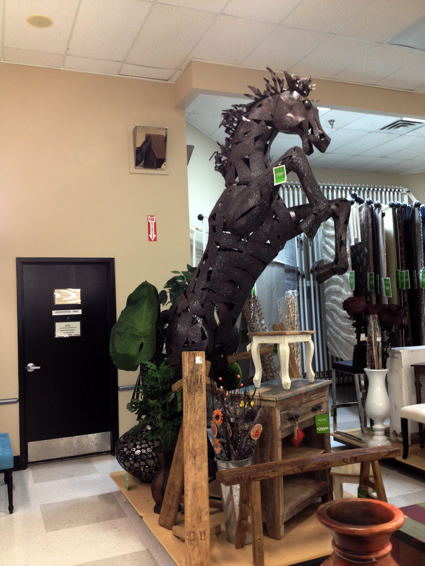 Про лошадей вот тогда постили, я теперь невольно внимание обращаю когда всякие картинки-бюсты лошадиные вижу, прям не знаю как отвязаться  . Но что я видела вчера в TJ Maxx это упасть не встать, сфотографировала чтоб показать. Размером ппочти под потолок в магазине, никому не надо часом?