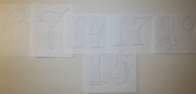 А это мой вклад в визуализацию. Развесила цифры на стене домашнего офиса. Хорошо хоть мужа дома нет, а то сказал бы, что с ума схожу. На фотке слабо видно, а так вообще в глаза бросаются. А вообще мне это напоминает "Пиковую даму": тройка, семерка, туз.