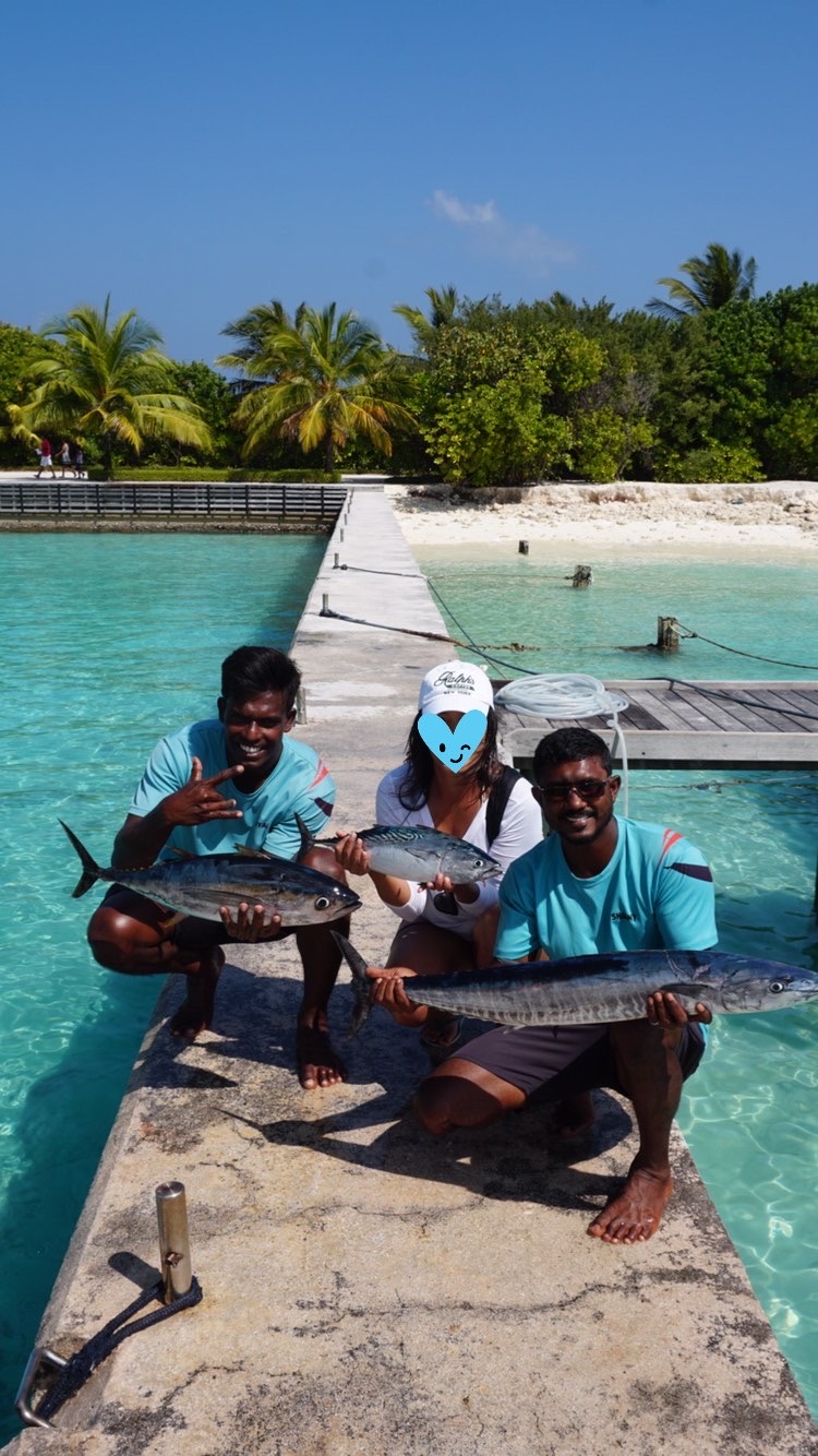 Вот мой личный улов на Мальдивах. Муж поймал огроменного/ огроменную и мы её тут же отпустили. Моих решили подарить to the crew Поскольку рыба в тёплых водах не вкусная, это связано с рядом причин. Ну эротическую фотосессию тут ставить не буду, ато бабки вконец озвереют