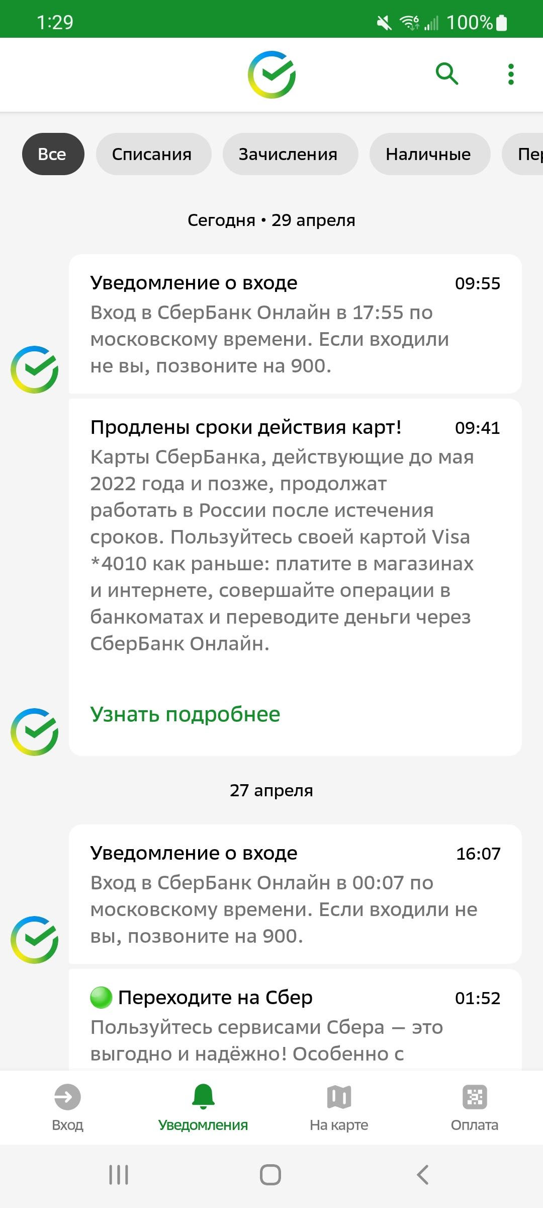 Я сегодня вполне себе успешно пользовалась мобильным приложением сбера. Может, конечно, еще не вечер. Ирэн, может я получила уведомления именно потому, что сроки карт истекают.