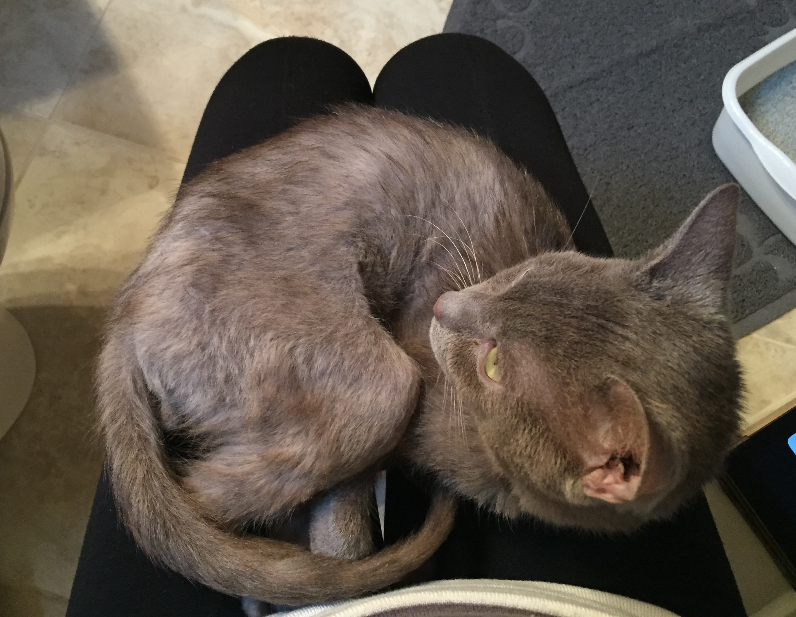Джакси, у нас уже есть адоптнутые кот и кошка , не знай на кой вот ещё один. Забрала я его уже сегодня, фии шелторные только кешем , а я не знала. Пришлось тащиться в банк снимать 25 долларов :)). Пока будет жить в басрум,э и потихоньку знакомить наших. Страшилко- худюшка, выглядит непропорционально - голова взрослого кота, а тело котенка. На еду не набрасывается совсем, перекусит и отойдёт. Его в шелтер приняли 1 ноября, по идее должен был хоть немного отъестся уже. Может таким и останется?  Его побрили потому что шерсть была вся скатанная, хоть и короткошерстный, но он выглядит не как побритый, а как выщипанный, шерсть клочками жесткая, пуха мало, в основном остевой жесткий волос торчит. Он ещё такого taupe gray цвета, на крысенка похож. Его принесли из дома с многочисленными животными, может быть из hoarding house. После праздников идём к вету за планом как отъесться и привестись в порядок