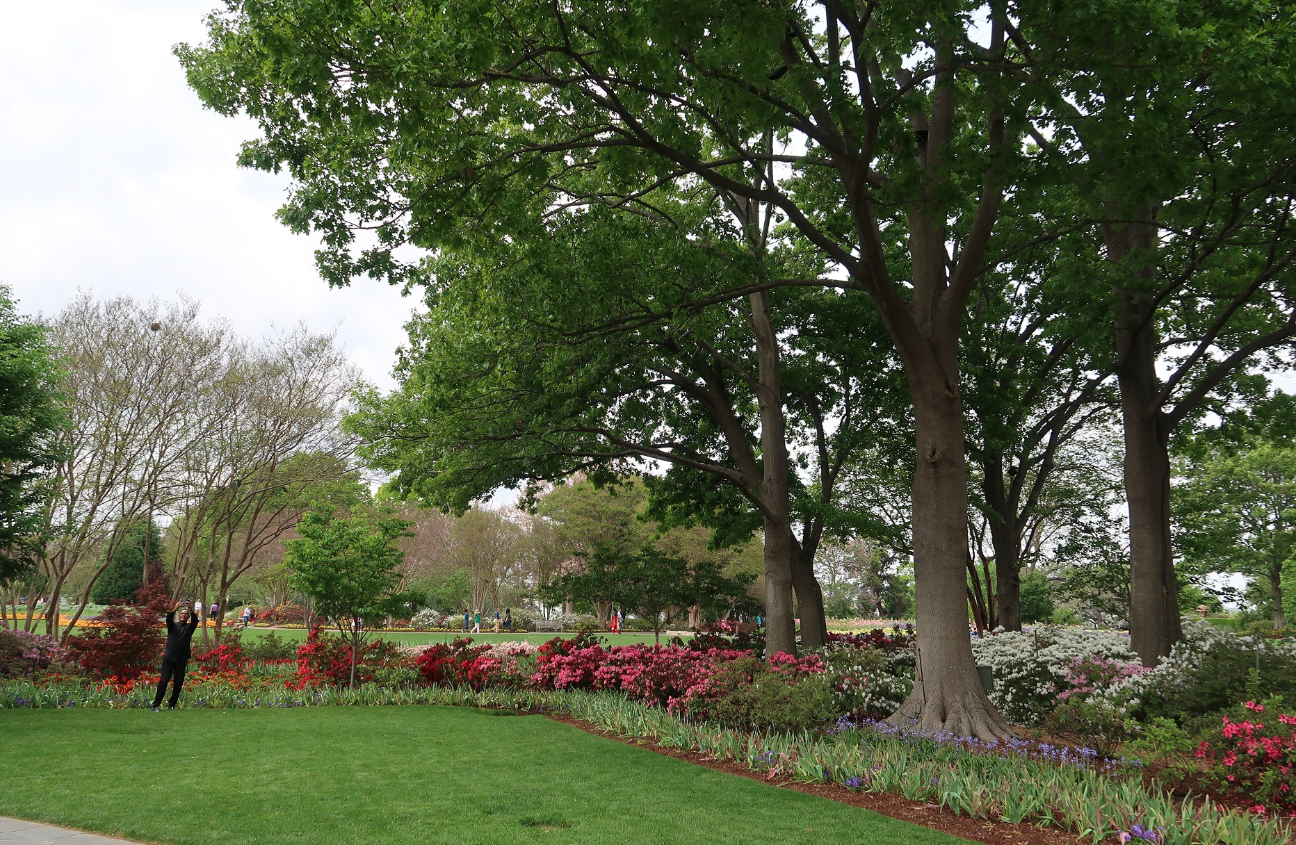 Уже тепло. Вчера гуляли без верхней одежды. Цветов много. Но деревья пока голые стоят. :c_laugh