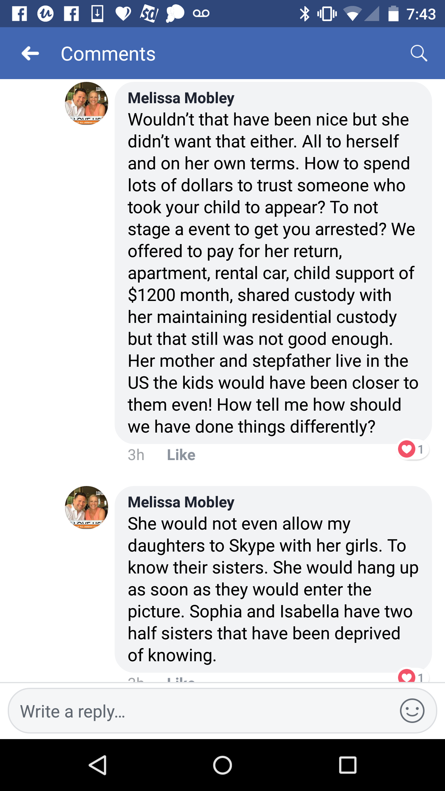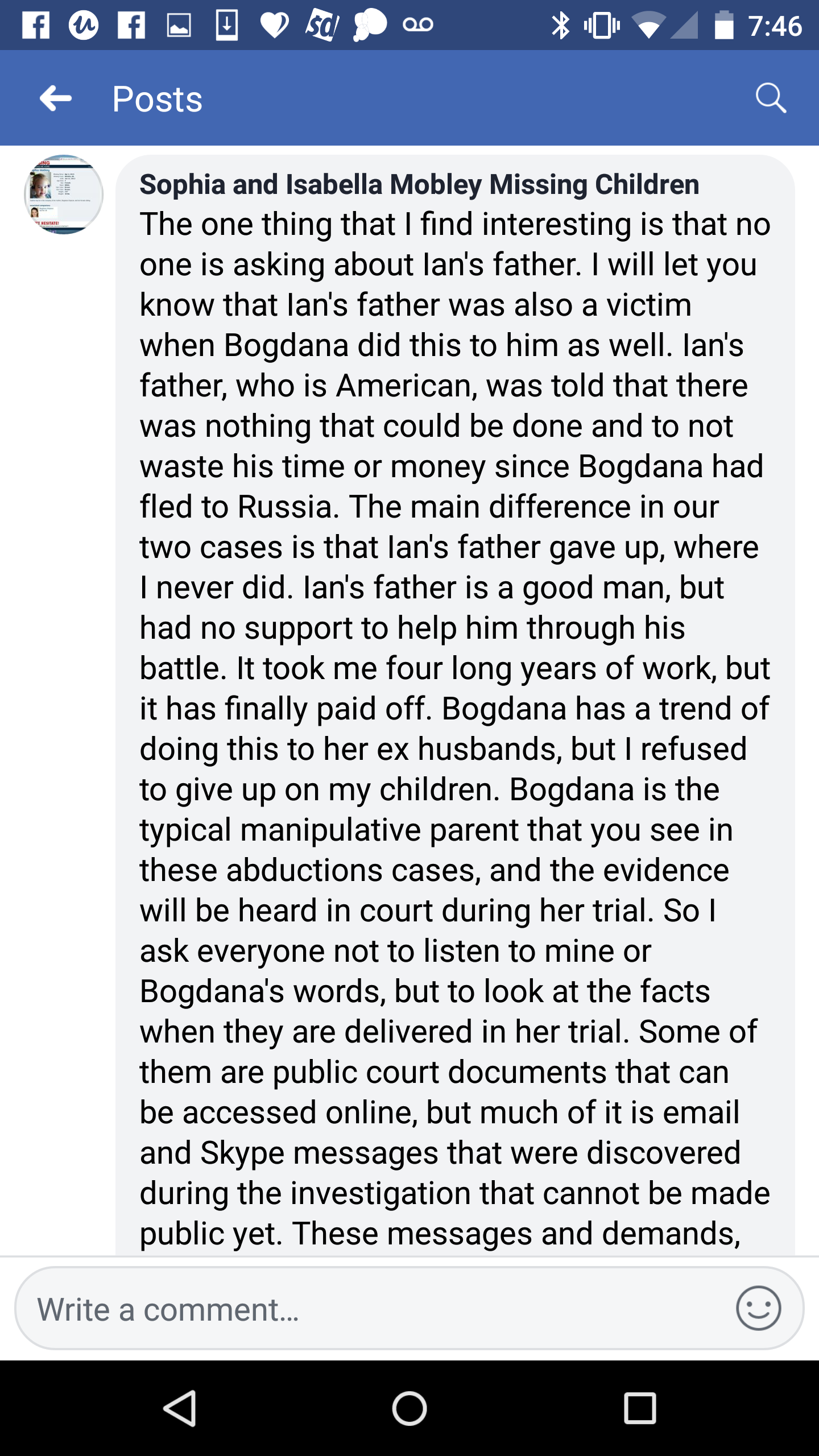 Чего огороды городить если все ее родня решила что девочек привезут. Все ее маменьки вина. Маменька уговорила приехать ее ибо как же она тут? Надо же любыми путями но в ОМеРИГЕ! Дочка сидеть будет, криминальный кейс не закроют. проблема с кастоди решена навеки-мама криминальный элемент и ей дети не положены. Не надо шпынять детей осуществлять свои собственные мечтя или играть на их психике маму слушаться во всем как мамаша Богданы сделала. Детство будет несчастливое у девчушек, это только начало истории. И угадайте что? Если они будут в проблемах бесполезно будет объяснять им потом почему мама их отдала!! Даже если временно отдала или оставила в нехорошем месте или с не теми людьми, разделила детей и отдала отцу-ОНИ НИКОГДА ЭТОГО НЕ ПРОСТЯТ! Спросите откуда я знаю это?!