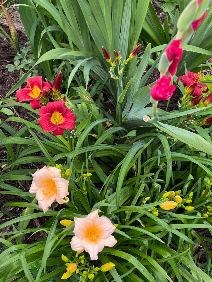 Baylee писал(а): Дэй лили, если уже большие кустики (2-3й год) даже в нашей жаре радостно цветут не меньше месяца  У меня в этом году приболели лилии, желтая вообще погибла, вроде. В первый раз такое. Ну что есть то есть. Мне твои расцветочки нравятся!!! У меня 2 peace лилии. Мне одной достаточно, в горшке. Другую осенью на выживание посадила на клумбу. присыпала ,,мулчем и она выжила заморозки. Самое удивительное, она цветет, а которая в горшке на порче-нет.! Начали гладиолусы цвести и гортензии . Помидоры, купленные рассадой в Лоусе погибли. Из семян здоровые, но много цветков облетело.