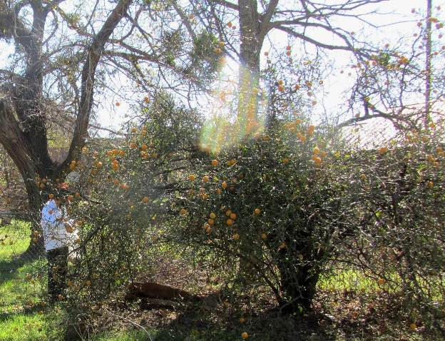 Вчера наткнулась на этот дерево-куст, прихватила несколько плодиков, они несъедобные, но ух какие красивые! А запах какой...смоляной такой...Вобщем, буду сеять. Небось, тебе семена тоже нада? Это Понцирус. Зимует до -20. Вот фотка всего куста, неудачная, но для представления о его форме сойдет. Вид просто новогодний" Он еще и цветет сейчас отдельными цветками, а весной так полностью покрыт, я картинки погуглила  Сейчас листьев нет, только колючки и золотые шарики, волшебный такой!