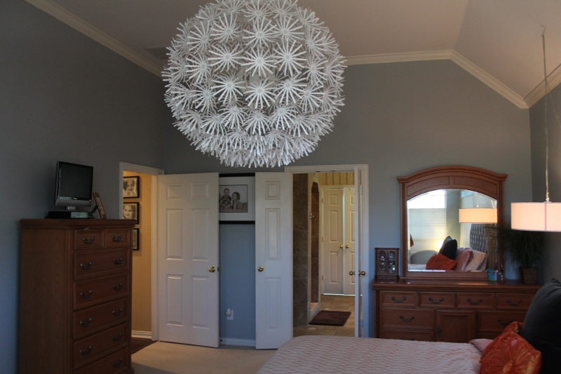 kuku писал(а): alisikova писал(а): а это мастер бед рум. тоже люстрочка нра очень. а она не низко висит? Такая люстра, мне кажется,больше для высоких потолков подойдет, в гостиной где нибудь. А здесь она как то неуклюже смотрится. Я бы её наверное головой постоянно задевала. я ее перевешу в плэйрум на 2м этаже или может быть фэмели на 1м. в спальне она хоть и симпатично-воздушная но смотрится агресивно-пугающе и вообщем то под дизайн спальни не подходит. спальня более консервативная, люстрочка веселая модерн.