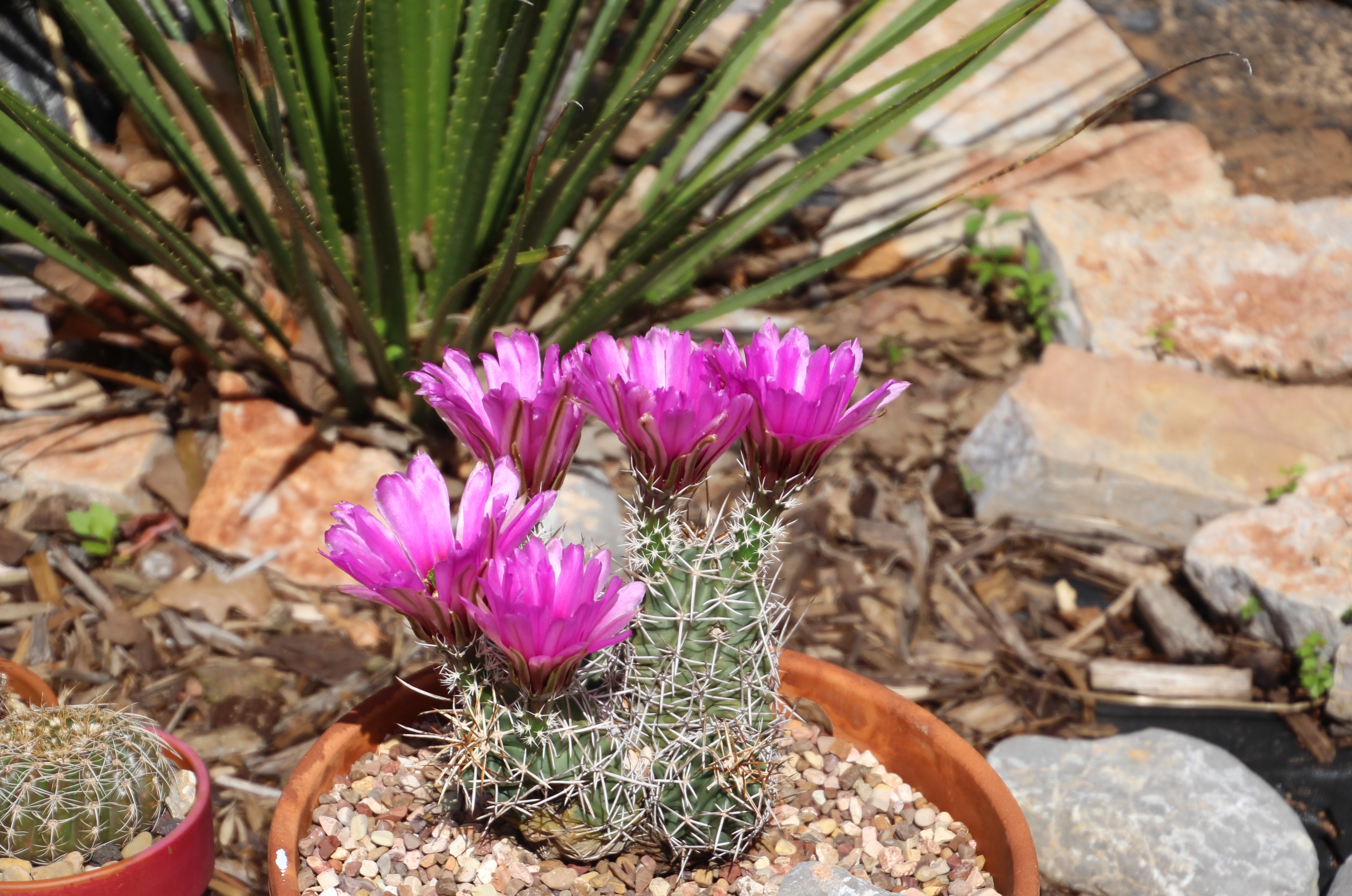 Мне бы не пару мешков, но и не грузовик...наверное, все же буду черпаками покупать. Остатки всегда найдется, куда приспособить. Мой кактус из-под Альбукерке, фестиваль воздушных шаров посетили и около антика неподалеку вижу здоровую тачку с камнями и опунцией и вот таким кактусом, но огромным. Пошла поинтересоваться, не продадут ли отросточек. Отросток тетенька зажала  . но подсказала, куда нам поехать неподалеку на пустырь и там накопать. Не так быстро, но нашли-таки подобный. Щастью моему предела не было. Поскольку, надеюсь, он харди, тогда я его в горшок приспособила - дело к зиме все же было, но сейчас вот думаю о высадке в грунт. Или в горшке оставить ...  Ну это дело десятое, главное - зацвел вот  Представляю, кака выглядит сейчас тот здоровенный какт в тележке...  Он раз в 10 больше, если не в 15.