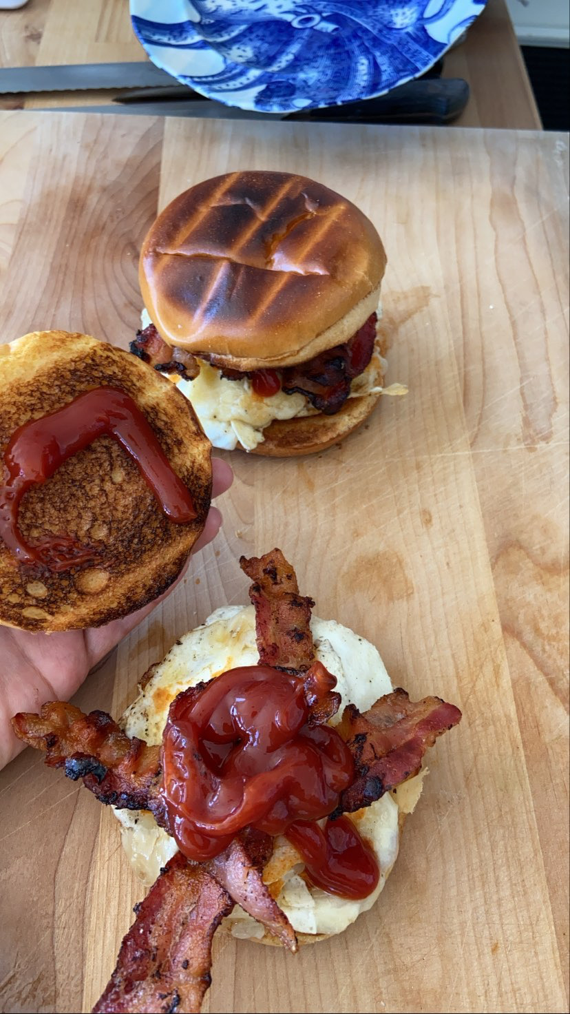 Девочки сегодня у нас был американ брекфаст  вернее бранч Опять же все Поджарить и накидать на булочки, ничего особенного а вкууусно  И совсем не по домашнему  Вива Америка Разок можно и колу со льдом
