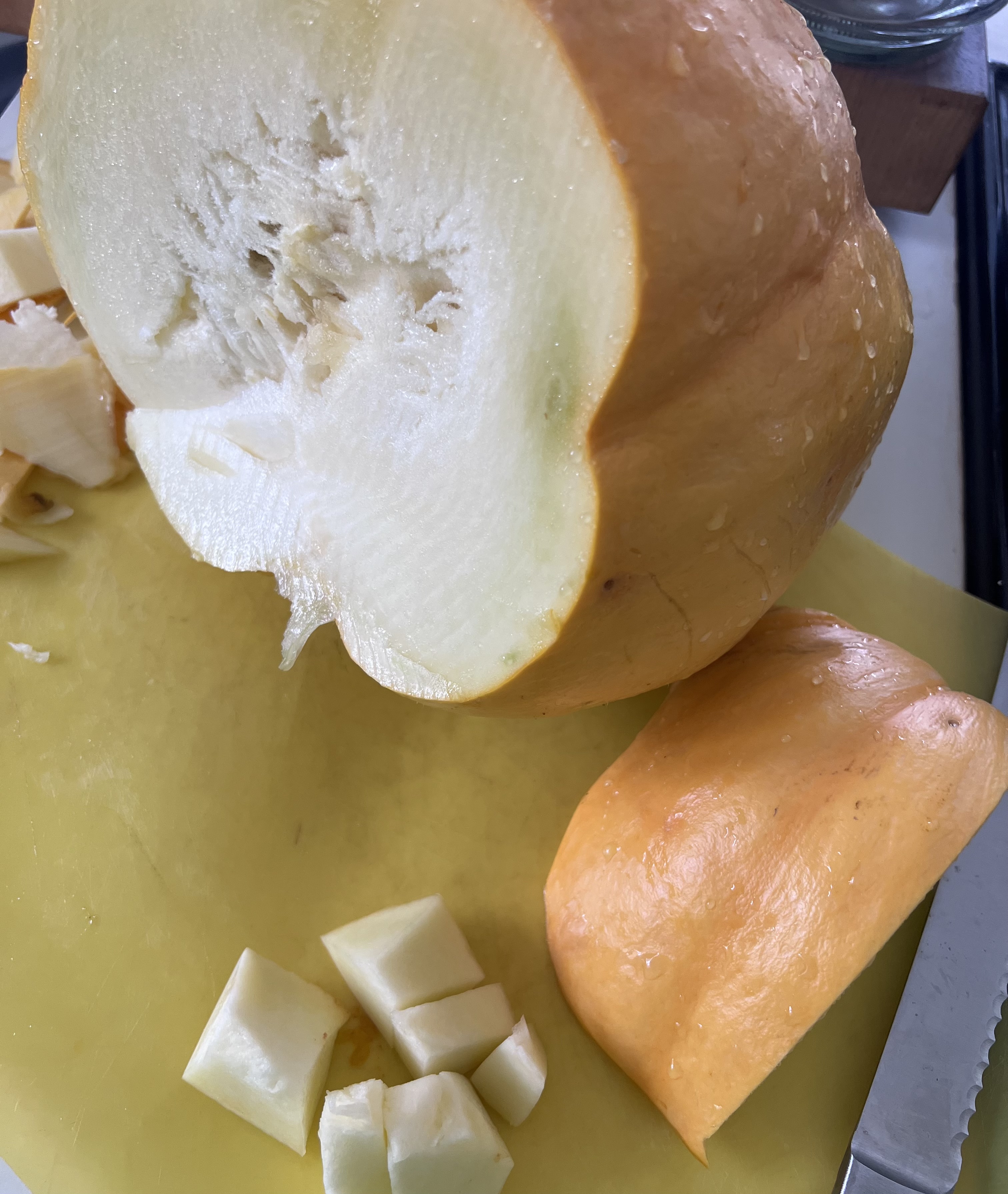 mamik писал(а): Суслик2 писал(а): Опять делаю тыквенный супчик: Какая тыква белая. А как она на вкус? Таня, я помню что обещала. У меня тут завал был, в след.понедельник все вышлю.  . Тыква молодая, шкурка тоненькая и мягкая. Я не рассчитывала ее срывать, просто повернула посмотреть, а она - хрясь! и обломилась. Пришлось варить суп. Из - за моркови он выглядел желтым по цвету как и положено. Вкус бомбический! Мамик, не беспокойся, я и так вся в благодарностях!!