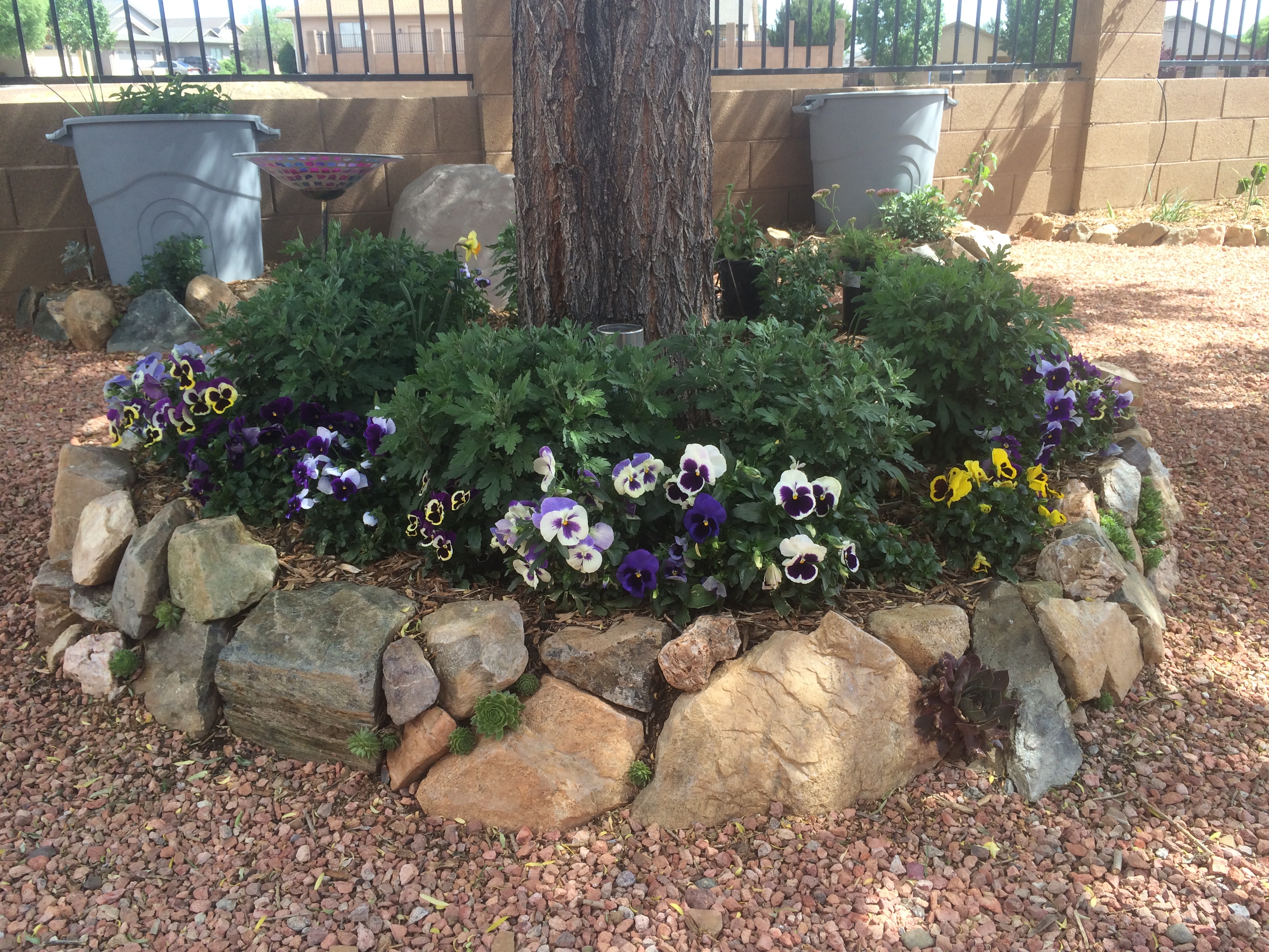 Девы, спасибо за добрые слова, сижу, сияю:-) Да, горку тоже сама. Когда пруд рыла, надо было куда-то глину нарытую девать. Тогда и решила ,- быть горке. А та большая гора на горизонте, это уже до меня было, природа создала:-) 4500 футов. Камни для всех клумб принесла из крика, он сразу за забором.