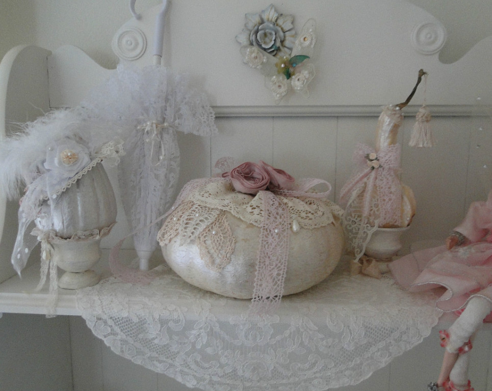 Кисмет писал(а): Adolocha писал(а): Кисмет, до белой тыквы я ещё не созрела, а вот рыжая ведьма на рыжей тыкве очень понравилась. Ты ведьму сама одевала? Куклу какую использовала? Хотя про куклу на публику не отвечай, там уже костёр ведьмы вокруг волмарта разжигают... Сделала из папье маше, ткань- кружева винтажные. Розы на метле - фейри из сада. Называется- Когда твоя метла расцветает. Вчера возила дочку с ее подружкой тыквы собирать- смотрю моя только белые берет) привыкла) Подружка удивилась- та набрала оранжевых. Мы обычно шебби делаем( ха-ха) перламутром покроем и лежат . Супер, не то, что вата из памперсов на лампочках и скелетоны из доллар три, нежные кружавчики, шабби очень класный стиль!