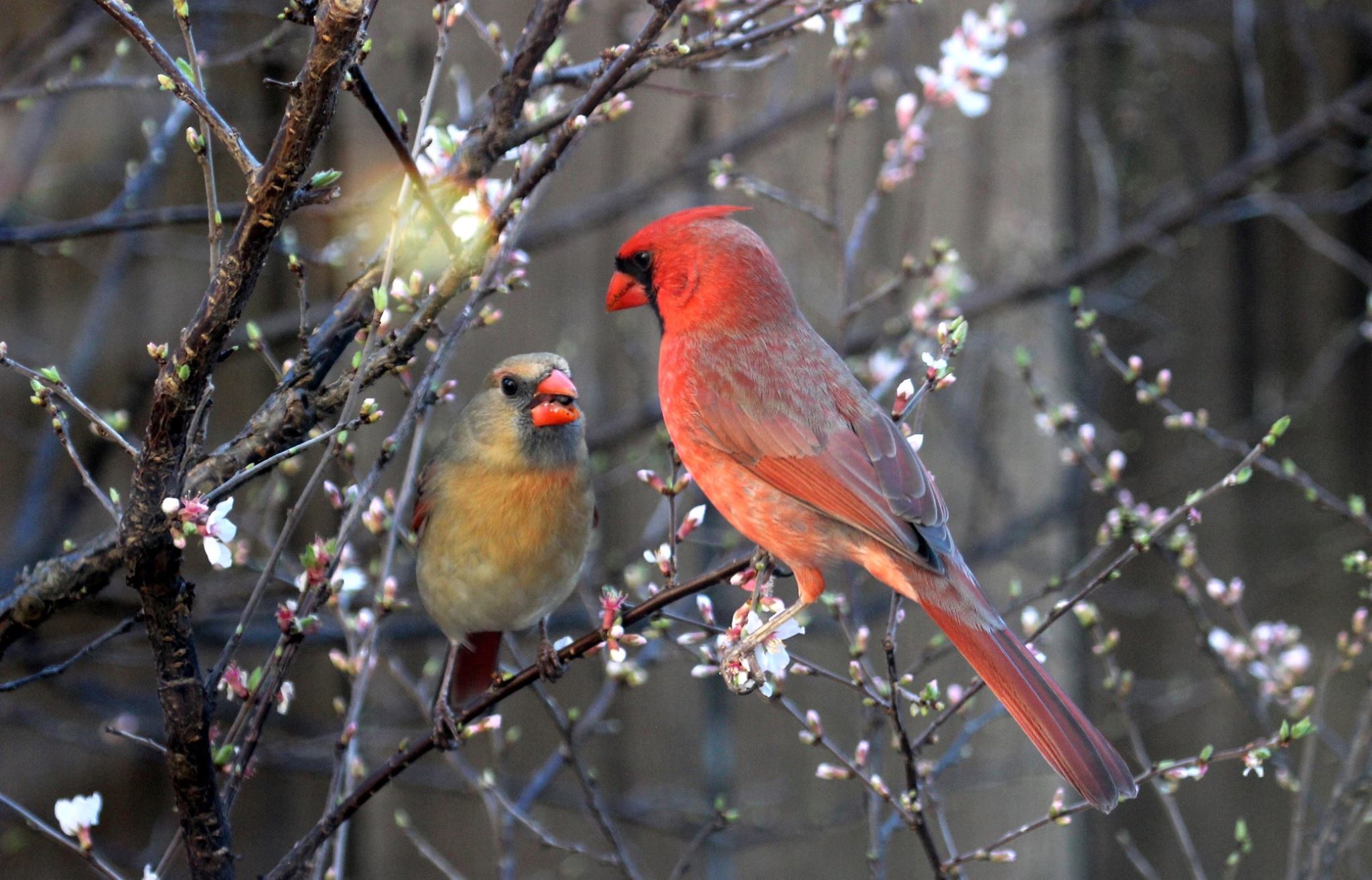 У меня тоже живет парочка кардиналов, парочка голубков и парочка мокингбердс.  И еще почти каждый день ястреб на заборе сидит. Созревает капуста и цветут камелии. Сегодня прочитала, что пора сажать картошку.