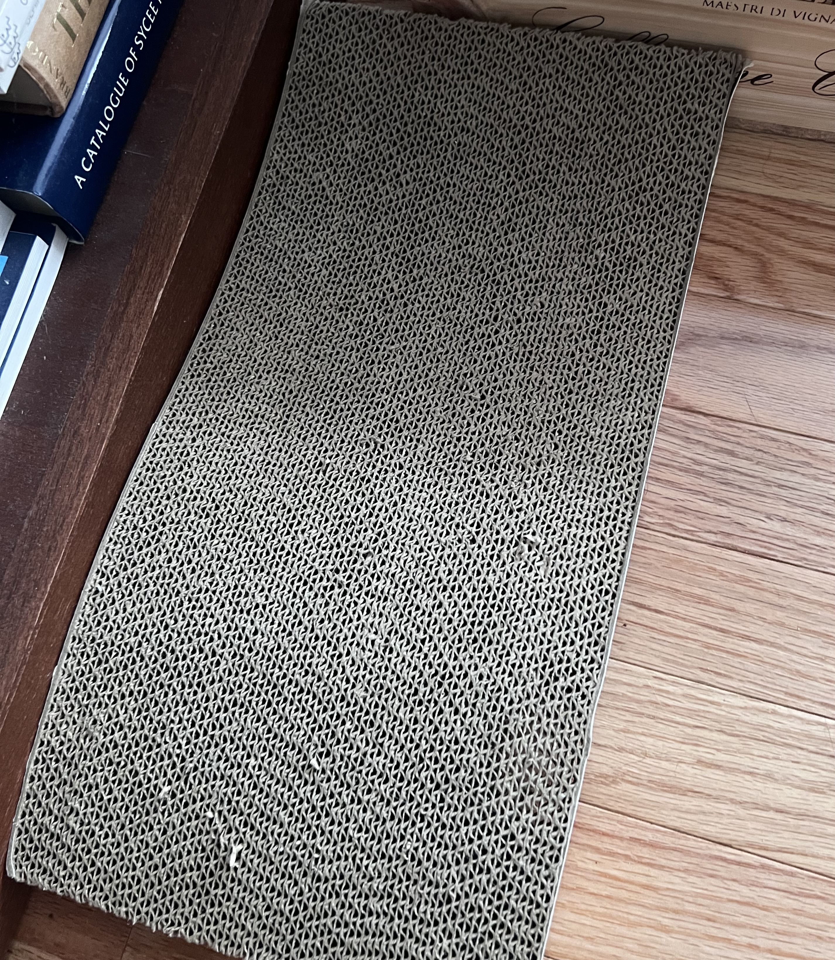 Лежит одиноко эта когтеточка. Покупали специально для отелей. Там пользовалась. Дома на нее не реагирует.