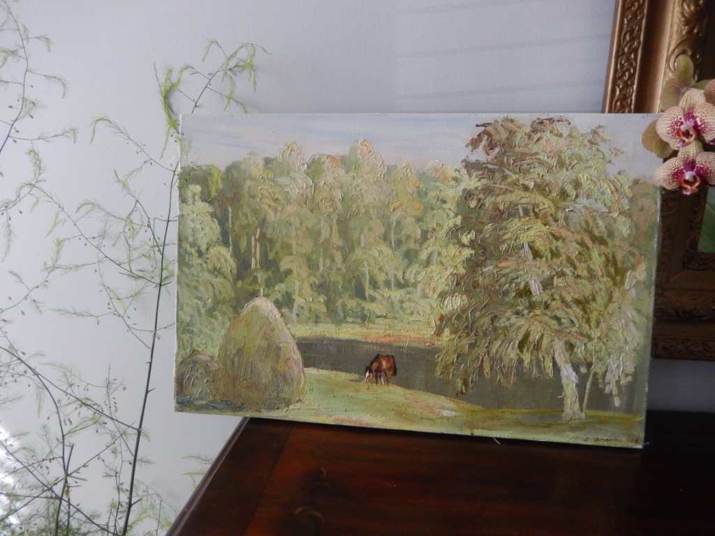 Девочки, спасибо за советы!! Алиен ,особое спасибо за столь обстоятельный ответ, буду изучать.  Эта картина не местная,а российского художника. Мне давно его картины нравились, особенно с природой. От них как свечение идет.  Я была у него в мастерской, он мне много чего рассказывал, показывал. Насчет рамы сказал,что это важная составляющая картины. Вот я все никак и не выберу.Купила на эстейт сейле старинную деревянную, наподобие, как рама на зеркале. Но размеры были не те. Муж сколотил(руки -крюки)  и рама косоватая была. Выбросила ее. Хотела в Хоум Гудс подобрать-купить картину из-за рамы, но размеров таких тут не нашла. Хайкласс, стена светло-серая. Почему-то темную раму не хочу. Вообще рамы здесь дорогущие. Я как-то писала, купила по дурости на аукционе картины,вернее сериографы за 500$.А рамы в тысячу обошлись.  Я наивно думала, что картины продавались с рамами...Ну там еще стекло сверху.