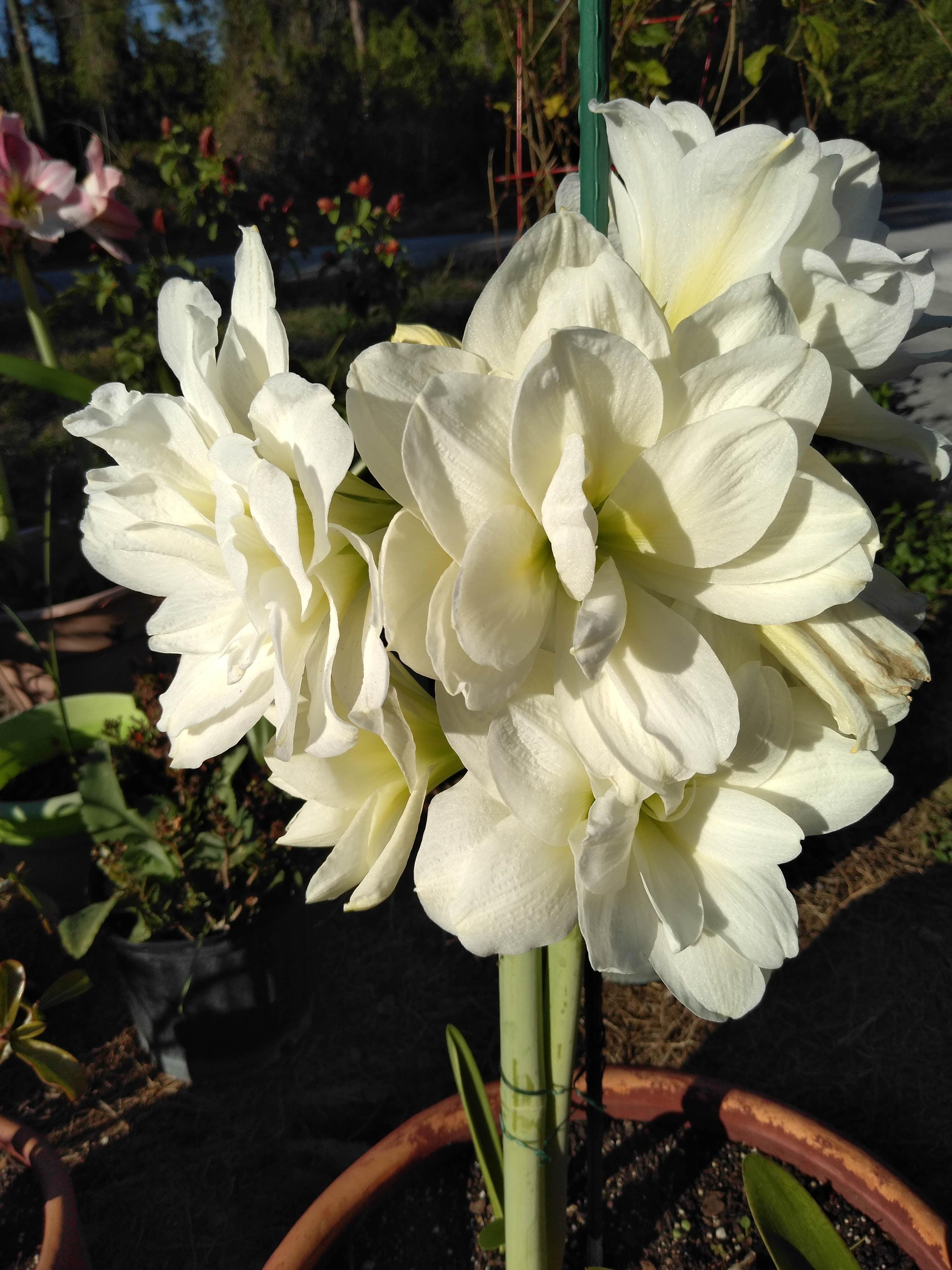 OklaXoma писал(а): Мамик, классные амариллисы! Первый вообще невиданного цвета. Белый тоже необычный, целый букет.да и последний пышный какой. И ведь в горшках! Ты их пересаживаешь с какой-то регулярностью или годами в одном грунте? А детки появляются? у меня в открытом грунте они, детки нарастают очнеь неторопливо. Орха очнеь впечатляющая! В этом году перед христмасом в волмарте продавали амарилисы в горщках. Знаете такой набор - высыпи из пакетика труху, засунь луковицу и залей водой. Разных цветов. Я парочку взяла. Вот тот первый как раз их этой серии. Белый это там две стрелки, на каждой по 6 цветов. Цветы махровые, крупные и тяжелые. Пришлось привязать к палке иначе падали. Вот и получился букет. У меня все в горшках. Пересаживаю раз в три года, как деток нарастет куча и уже места нет.