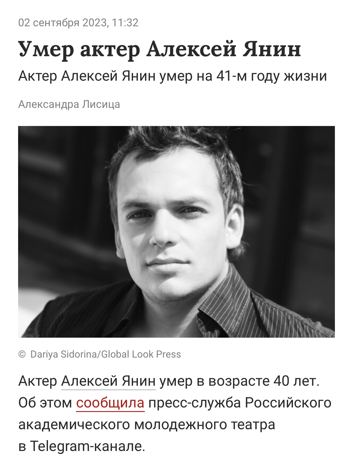 Недавно помер от последствий инсульта один молодой актер. Так тоже уже объявили его с прискорбием, хотя он еще прожил полмесяца. Видите? Официальная дата смерти 20 сентября.