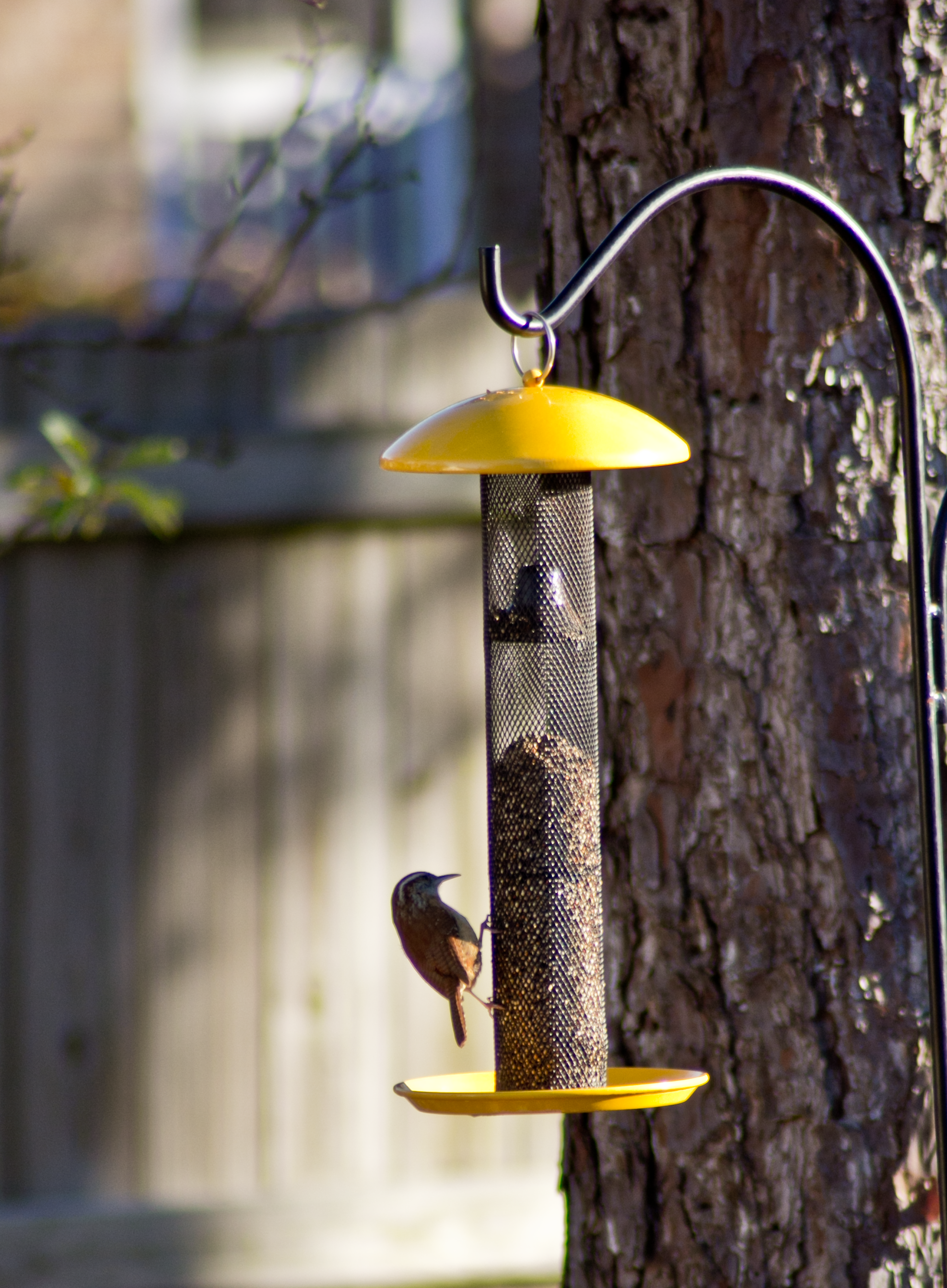 OklaXoma писал(а): белки уже гроздьями на кормушке висят (кормушка, причем, противобелочная  ) Только подумала что у меня такая кормушка что белкам будет не интересна.. и что я вижу.. висит в акробатической позе, каким то образом достаёт из мелких отверстий зерна. Оклахома, точно Carolina wren. Даже и не подозревала что такие красивые пташки водятся у меня. Надо их с камерой сторожить. И искать хорошую теле линзу, в смысле не за 2000 тыс.