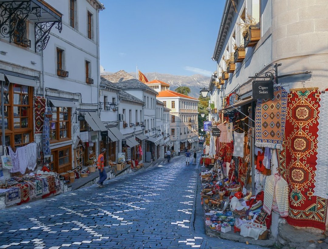 Потрясающие улочки Gjirokaster City in Albania Shitet  Бетя на твоей фотке флаг Албании - двуглавый орёл чёрный на красной крови албанских патриотов