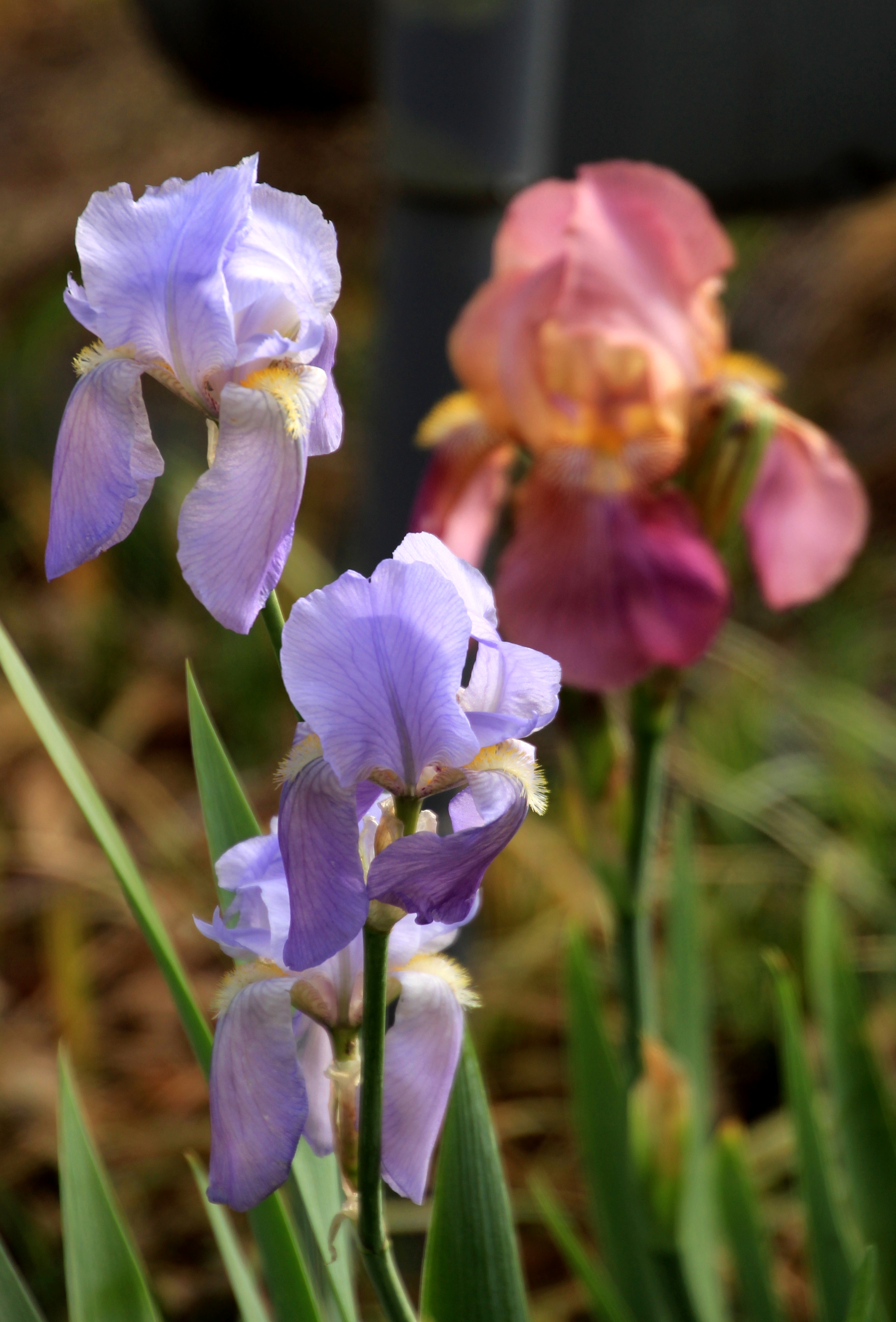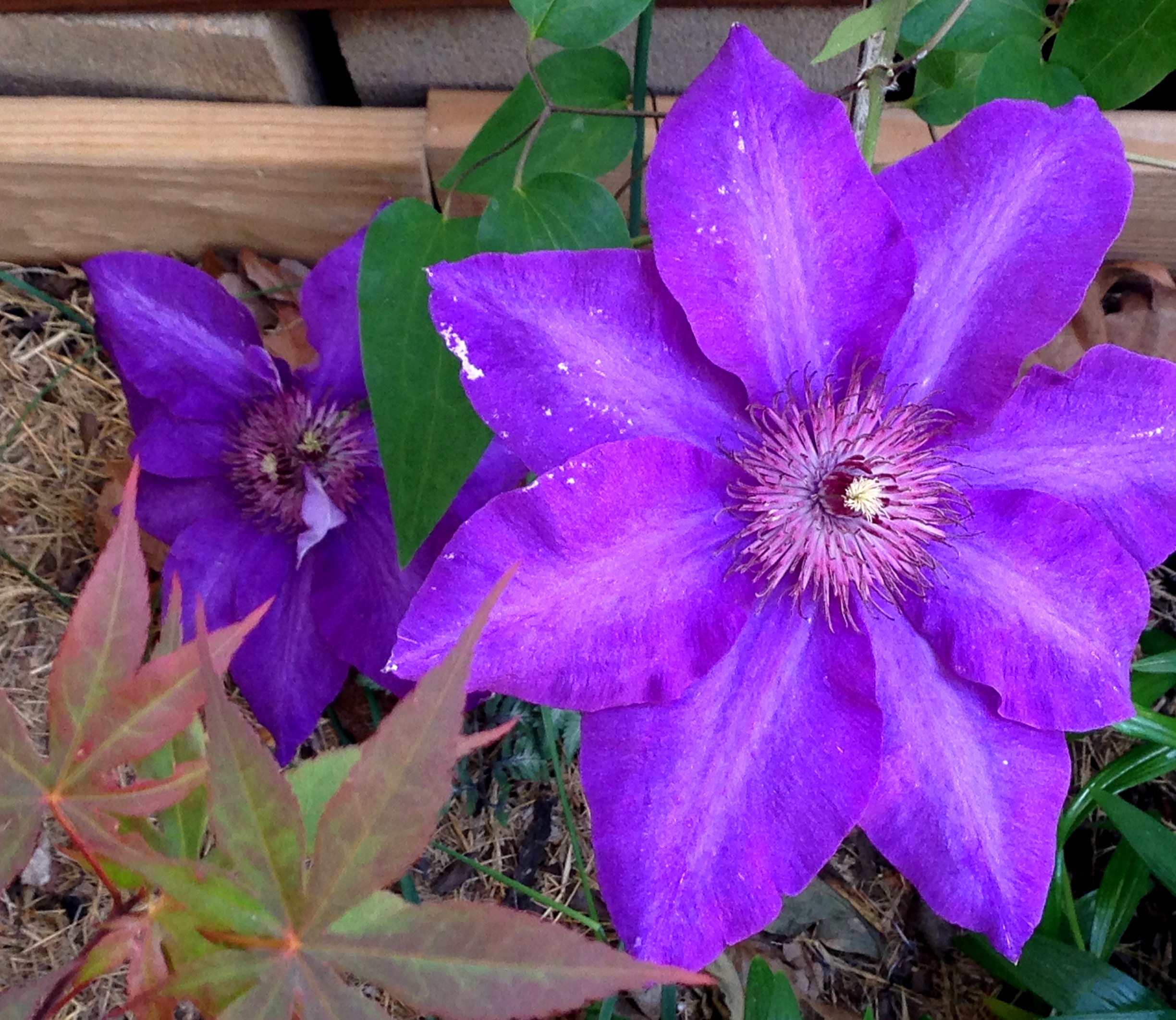еще пара-тройка ирисов, голубые очень старые, бледненькие, но все равно милые а вот желтый - что надо, цвет совершенно чистый и густой, буду его рассаживать  но он как-то не очнеь разрастается, хотя ему третий (а может и 4? ) год, а стрелка всего одна. Блеклый грязновато-желтоватый прет как настоящий сорняк, разрастается успешно и цветов охапки. Еще пара неведомых бутонится, скоро порадуют. клематис, очень крупный  Обнаружила что вариегатный ирис не пережил эту теплую зиму. Очень жаль.