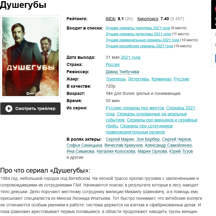 lena 45 писал(а): https://hdrezka.sh/series/thriller/39949-dusheguby-2021.html Классные сериал