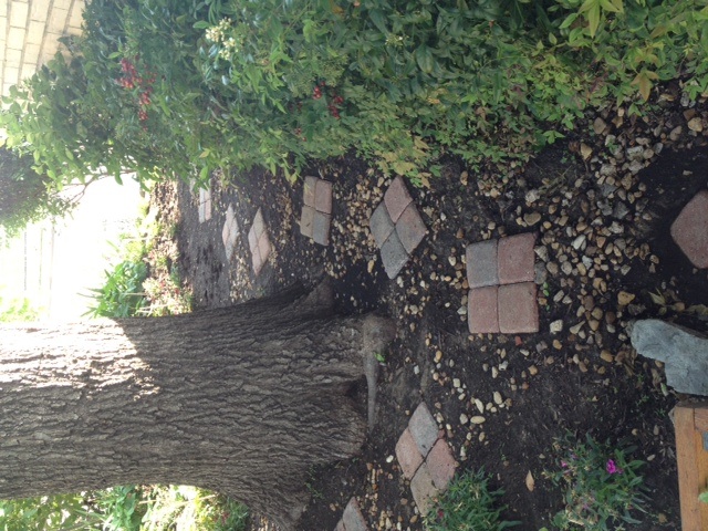 Вот эти кирпичики я собственноручно закопала, чтобы огурцы поливать легче было: