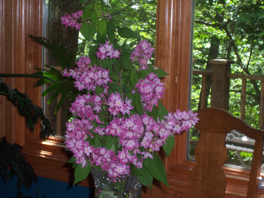 nevera писал(а): ДжаксиУ меня растет фикус Бенджамина-могу сказать-растение довольно требовательное к уходу-любит освещение( конечно не прямые солнечные лучи),,влажный грунт( не перелив) и опрыскивание и температуру не ниже 15С.На отсутствие чего либо-сразу сбрасывает листья.Но растение красивое и главное полезное-очищает воздух.Соглашусь девочками-сенсевьра-очень удобное растение,не требовательное в уходе. Сижу расстроенная,у нас сегодня был такой ветер,что соседская сосна под метров 40 высотой упала на угол нашего дома,перекрыла выезд из гаража.Рядом соседняя сосна стоит качается,если упадет-как раз на гараж,где 3 машины.Вообщем ужас  Бенджамина вcе ж попробую. У меня рос этот щучий хвост там ,котейки раздербанили.Когда я посадила новый-никак. умирает и все тут. Мне так-то щучий хвост нравится. Может, еще раз попробую. А с деревьями большими вокруг дома-это да, красиво,но чревато.  Мы так жили в другом доме- замучались. И дорого очень рубить . Вот, кстати, фотку нашла из того дома, это такие кусты у меня там были. Цвели очень красиво. Здесь, во Флориде я таких не вижу, но кто посевернее- очень советую.Когда цветут-красотища.  Название не знаю.